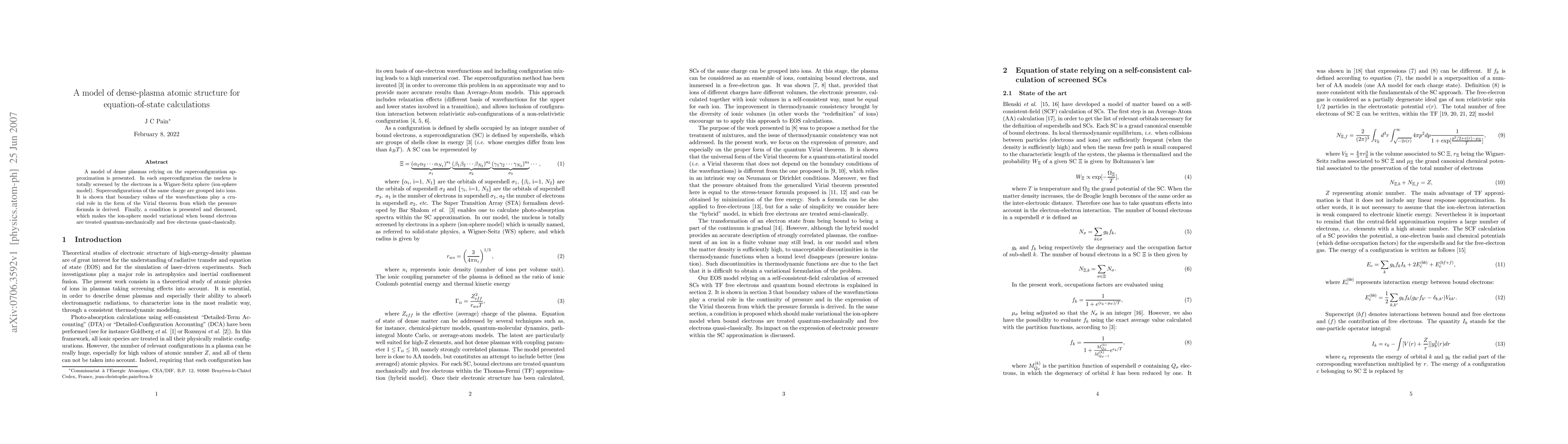 A model of dense plasmas relying on the superconfiguration approximation is presented. In each superconfiguration the nucleus is totally screened by the electrons in a Wigner-Seitz sphere (ion-sphere model). Superconfigurations of the same charge are grouped into ions. It is shown that boundary values of the wavefunctions play a crucial role in the form of the Virial theorem from which the pressure formula is derived. Finally, a condition is presented and discussed, which makes the ion-sphere model variational when bound electrons are treated quantum-mechanically and free electrons quasi-classically.