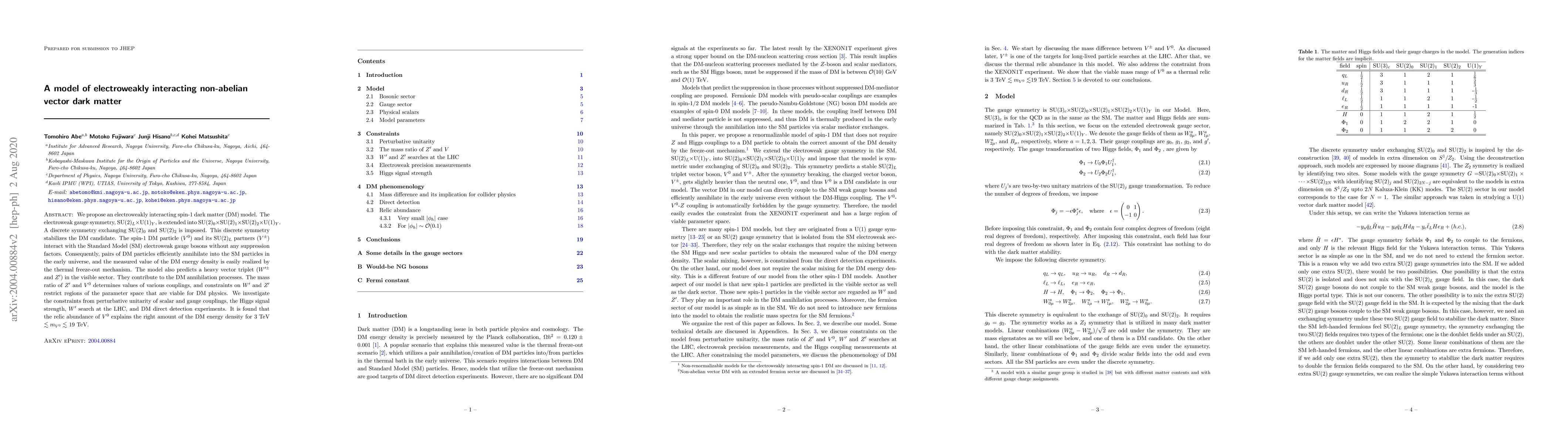 A new model proposes a spin-1 dark matter particle interacting with the Standard Model through electroweak forces, predicting heavy vector triplets and efficient annihilation processes that explain the right amount of dark matter energy density for 3 TeV to 19 TeV.