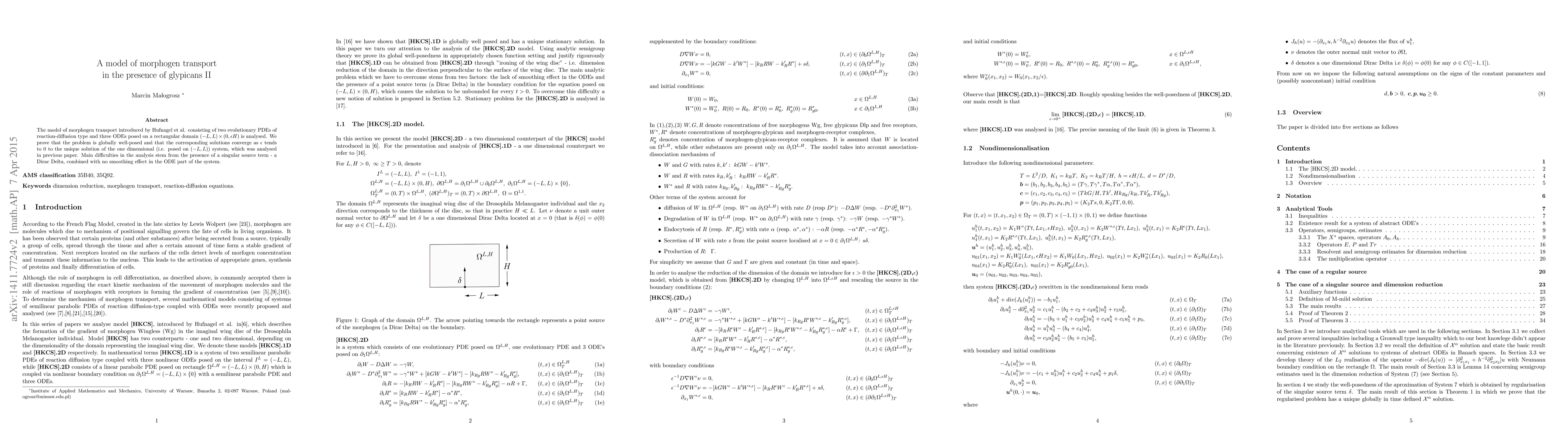Researchers develop a model of morphogen transport that combines two-dimensional reaction-diffusion equations with three one-dimensional ordinary differential equations, proving global well-posing and convergence to the one-dimensional solution as the domain width approaches zero.