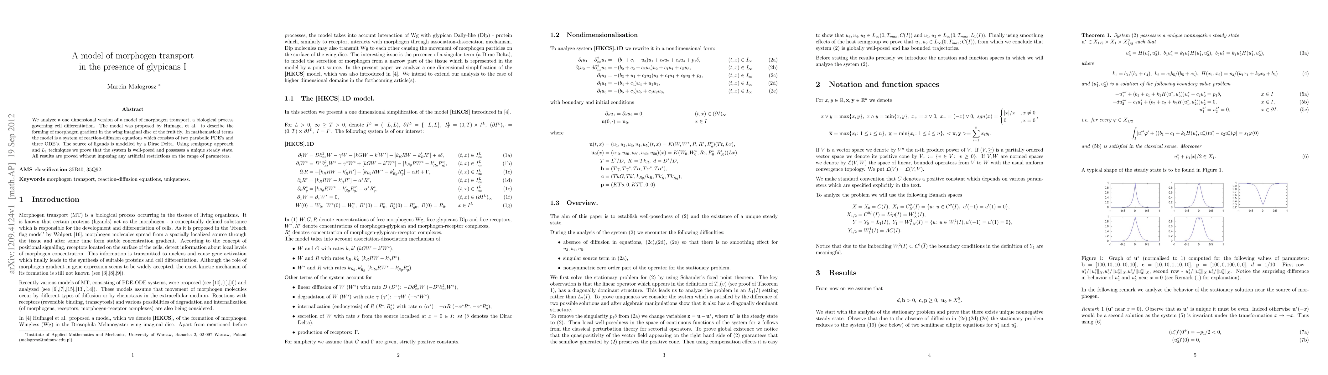 Researchers developed a mathematical model to study morphogen transport in biological cell differentiation, proving it has a unique steady state and is well-posed without artificial restrictions.
