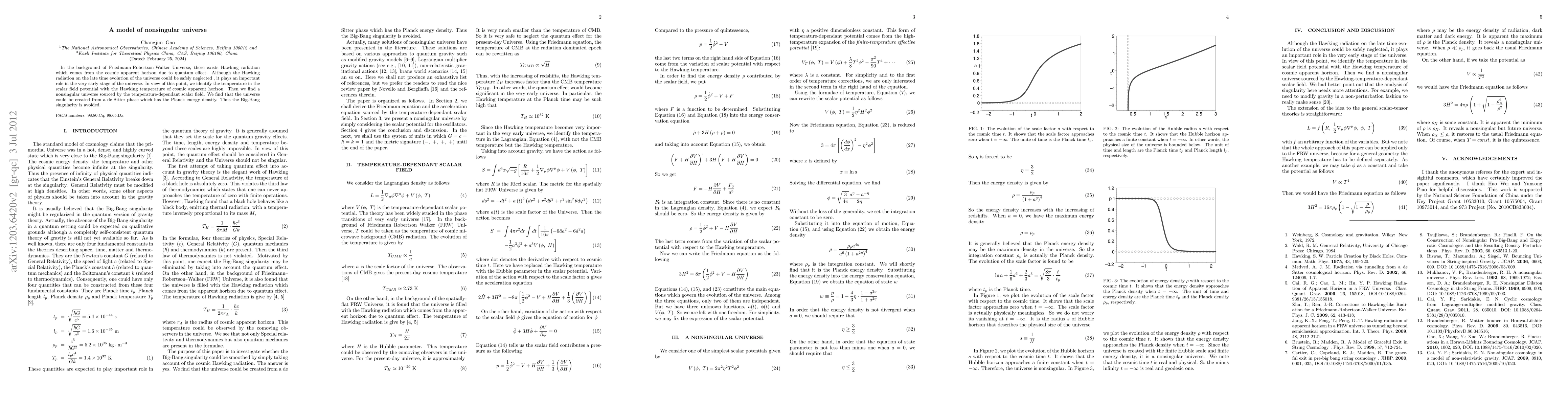 In the background of Friedmann-Robertson-Walker Universe, there exists Hawking radiation which comes from the cosmic apparent horizon due to quantum effect. Although the Hawking radiation on the late time evolution of the universe could be safely neglected, it plays an important role in the very early stage of the universe. In view of this point, we identify the temperature in the scalar field potential with the Hawking temperature of cosmic apparent horizon. Then we find a nonsingular universe sourced by the temperature-dependant scalar field. We find that the universe could be created from a de Sitter phase which has the Planck energy density. Thus the Big-Bang singularity is avoided.