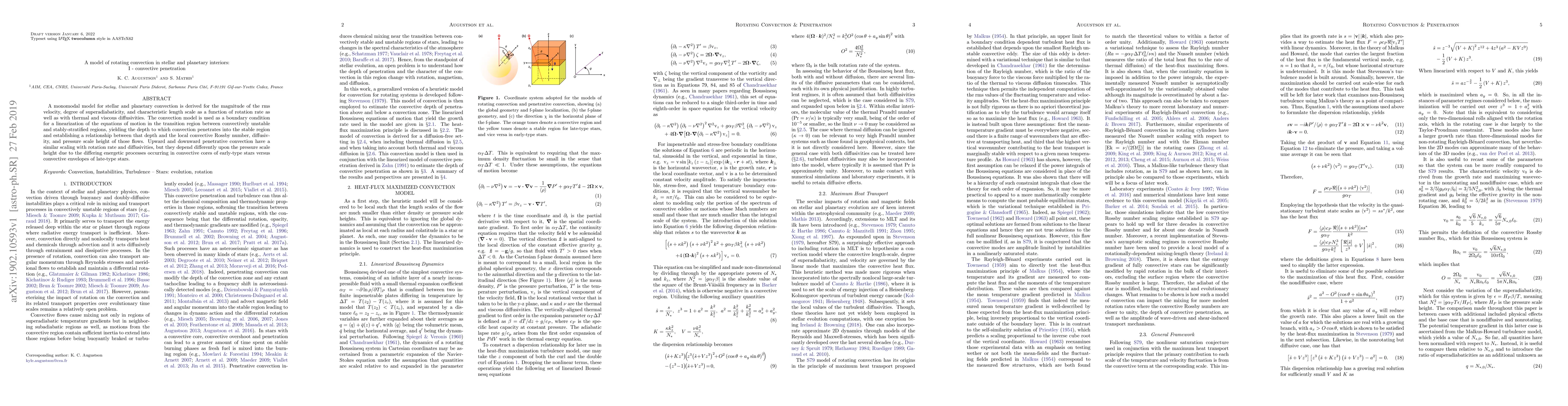 This paper develops a monomodal model for stellar and planetary convection, analyzing its penetration depth into stable regions under varying rotation rates and diffusivities. The model establishes a relationship between penetration depth and convective Rossby number, diffusivity, and pressure scale height, showing distinct behaviors for early-type stars and late-type stars.