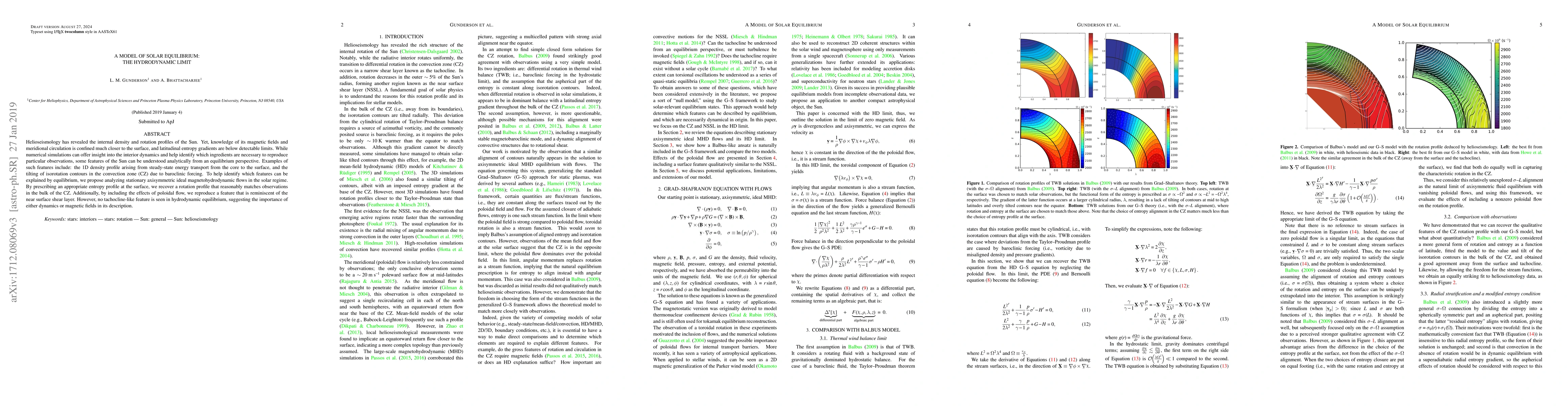Helioseismology has revealed the internal density and rotation profiles of the Sun. Yet, knowledge of its magnetic fields and meridional circulation is confined much closer to the surface, and latitudinal entropy gradients are below detectable limits. While numerical simulations can offer insight into the interior dynamics and help identify which ingredients are necessary to reproduce particular observations, some features of the Sun can be understood analytically from an equilibrium perspective. Examples of such features include: the 1D density profile arising from steady-state energy transport from the core to the surface, and the tilting of isorotation contours in the convection zone (CZ) due to baroclinic forcing. To help identify which features can be explained by equilibrium, we propose analyzing stationary axisymmetric ideal magnetohydrodynamic flows in the solar regime. By prescribing an appropriate entropy profile at the surface, we recover a rotation profile that reasonably matches observations in the bulk of the CZ. Additionally, by including the effects of poloidal flow, we reproduce a feature that is reminiscent of the near surface shear layer. However, no tachocline-like feature is seen in hydrodynamic equilibrium, suggesting the importance of either dynamics or magnetic fields in its description.