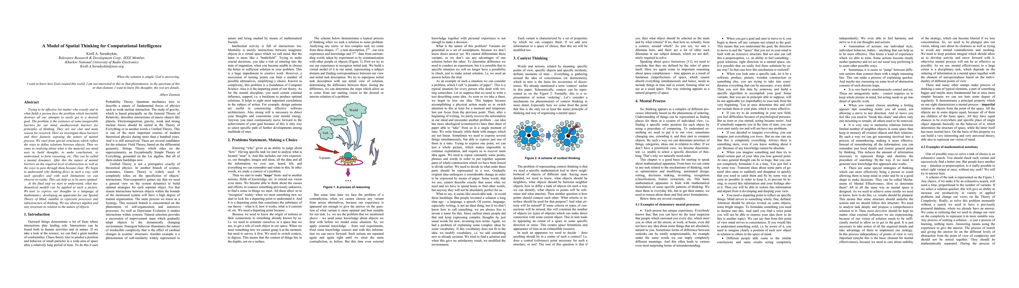 Trying to be effective (no matter who exactly and in what field) a person face the problem which inevitably destroys all our attempts to easily get to a desired goal. The problem is the existence of some insuperable barriers for our mind, anotherwords barriers for principles of thinking. They are our clue and main reason for research. Here we investigate these barriers and their features exposing the nature of mental process. We start from special structures which reflect the ways to define relations between objects. Then we came to realizing about what is the material our mind uses to build thoughts, to make conclusions, to understand, to form reasoning, etc. This can be called a mental dynamics. After this the nature of mental barriers on the required level of abstraction as well as the ways to pass through them became clear. We begin to understand why thinking flows in such a way, with such specifics and with such limitations we can observe in reality. This can help us to be more optimal. At the final step we start to understand, what ma-thematical models can be applied to such a picture. We start to express our thoughts in a language of mathematics, developing an apparatus for our Spatial Theory of Mind, suitable to represent processes and infrastructure of thinking. We use abstract algebra and stay invariant in relation to the nature of objects.