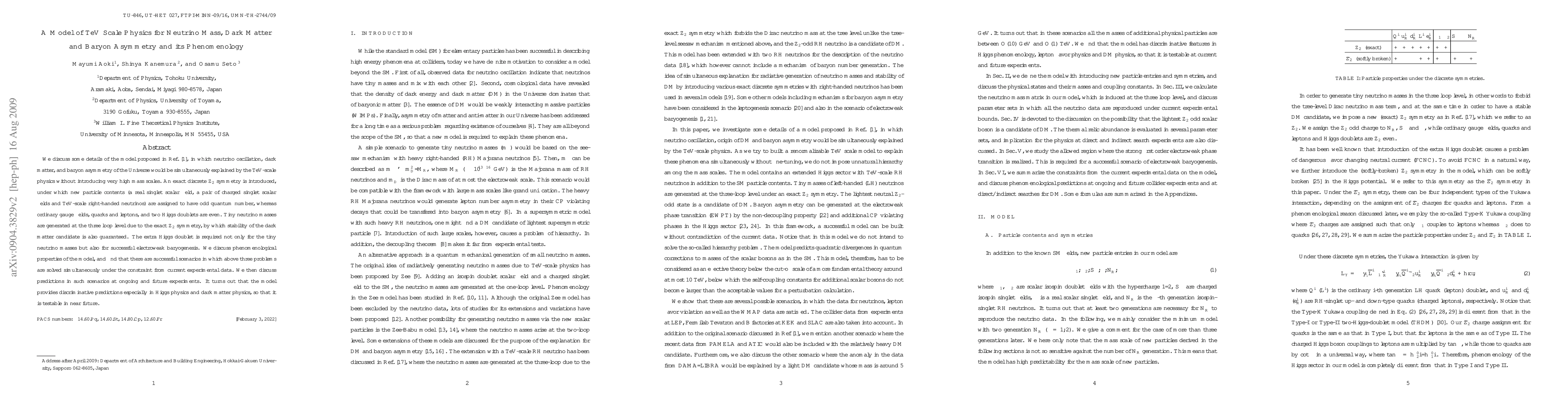 This paper elaborates on a TeV-scale physics model that explains neutrino masses, dark matter, and baryon asymmetry through a $Z_2$ symmetry, introducing new particles and predicting testable scenarios in Higgs and dark matter experiments. The model ensures tiny neutrino masses and dark matter stability via three-loop processes and electroweak baryogenesis.