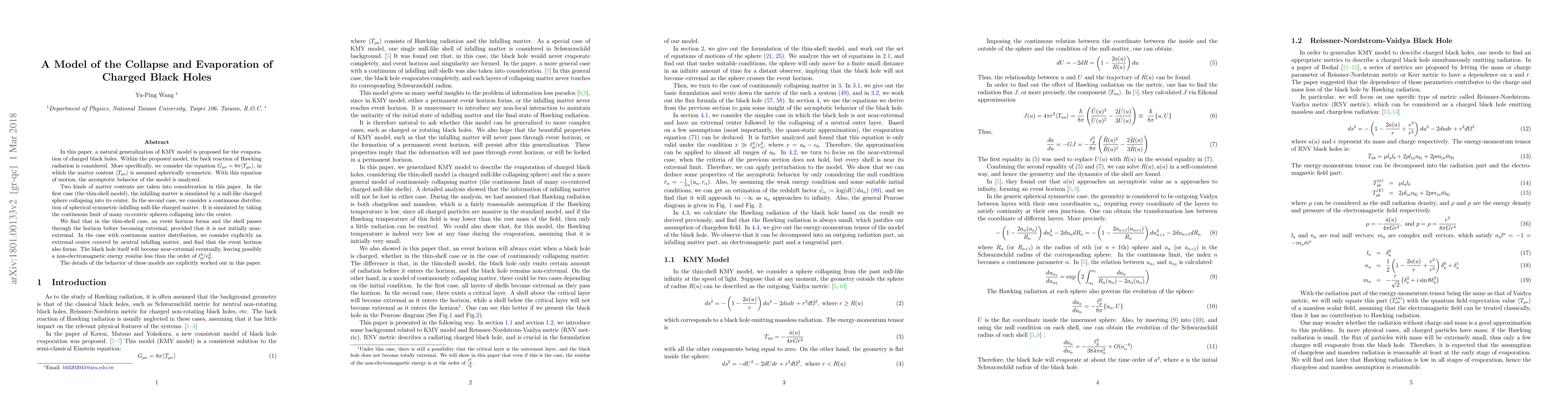 In this paper, a natural generalization of KMY model is proposed for the evaporation of charged black holes. Within the proposed model, the back reaction of Hawking radiation is considered. More specifically, we consider the equation $G_{\mu\nu} = 8\pi \langle T_{\mu\nu}\rangle$, in which the matter content $\langle T_{\mu\nu}\rangle$ is assumed spherically symmetric. With this equation of motion, the asymptotic behavior of the model is analyzed. Two kinds of matter contents are taken into consideration in this paper. In the first case (the thin-shell model), the infalling matter is simulated by a null-like charged sphere collapsing into its center. In the second case, we consider a continuous distribution of spherical symmetric infalling null-like charged matter. It is simulated by taking the continuous limit of many co-centric spheres collapsing into the center. We find that in the thin-shell case, an event horizon forms and the shell passes through the horizon before becoming extremal, provided that it is not initially near-extremal. In the case of continuous matter distribution, we consider explicitly an extremal center covered by neutral infalling matter and find that the event horizon also forms. The black hole itself will become near-extremal eventually, leaving possibly a non-electromagnetic energy residue less than the order of $\ell_{p}^{4}/e_{0}^{3}$. The details of the behavior of these models are explicitly worked out in this paper.