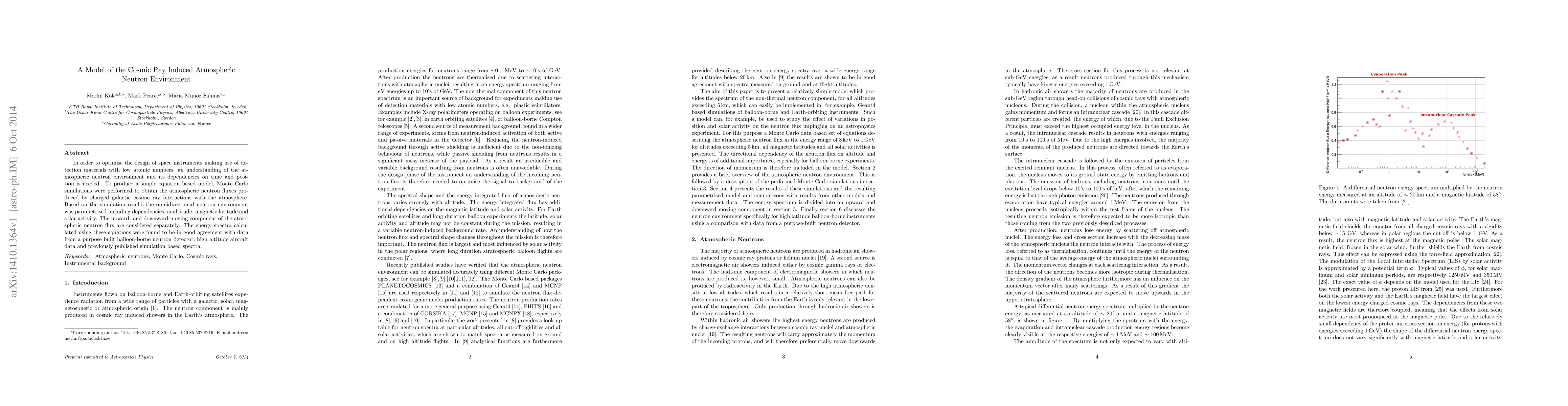 This paper develops a simple equation-based model for the cosmic ray induced atmospheric neutron environment, using Monte Carlo simulations to account for galactic cosmic ray interactions. The model parametrizes the omnidirectional neutron flux based on altitude, magnetic latitude, and solar activity, showing good agreement with observational data.