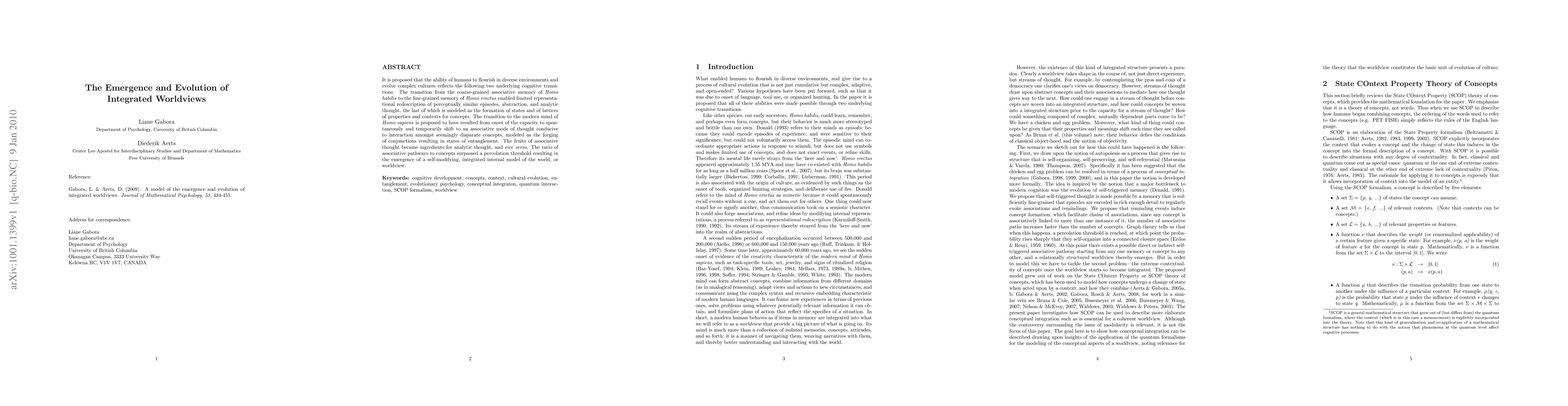 It is proposed that the ability of humans to flourish in diverse environments and evolve complex cultures reflects the following two underlying cognitive transitions. The transition from the coarse-grained associative memory of Homo habilis to the fine-grained memory of Homo erectus enabled limited representational redescription of perceptually similar episodes, abstraction, and analytic thought, the last of which is modeled as the formation of states and of lattices of properties and contexts for concepts. The transition to the modern mind of Homo sapiens is proposed to have resulted from onset of the capacity to spontaneously and temporarily shift to an associative mode of thought conducive to interaction amongst seemingly disparate concepts, modeled as the forging of conjunctions resulting in states of entanglement. The fruits of associative thought became ingredients for analytic thought, and vice versa. The ratio of associative pathways to concepts surpassed a percolation threshold resulting in the emergence of a self-modifying, integrated internal model of the world, or worldview.