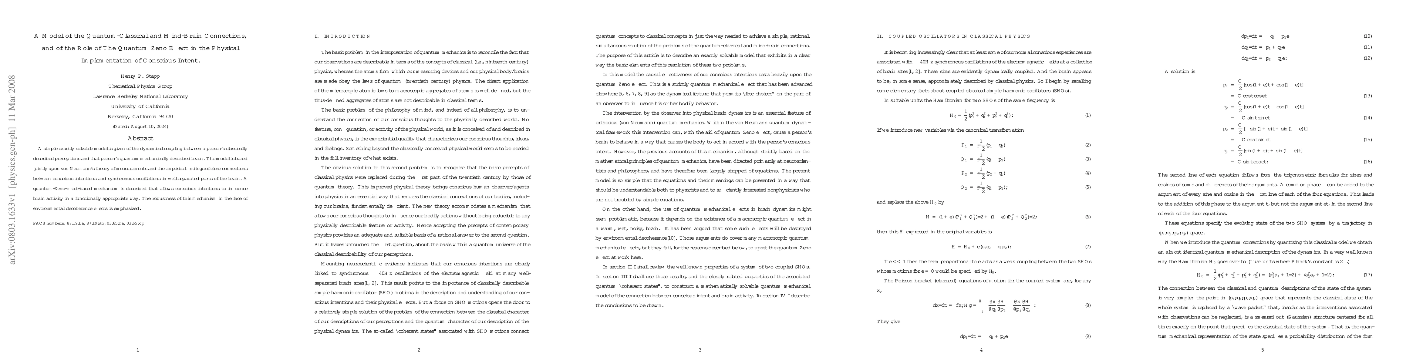 This paper proposes a model linking quantum mechanics and classical perception, demonstrating how quantum Zeno effects enable conscious intent to influence brain activity. It emphasizes the robustness of this mechanism against environmental decoherence.