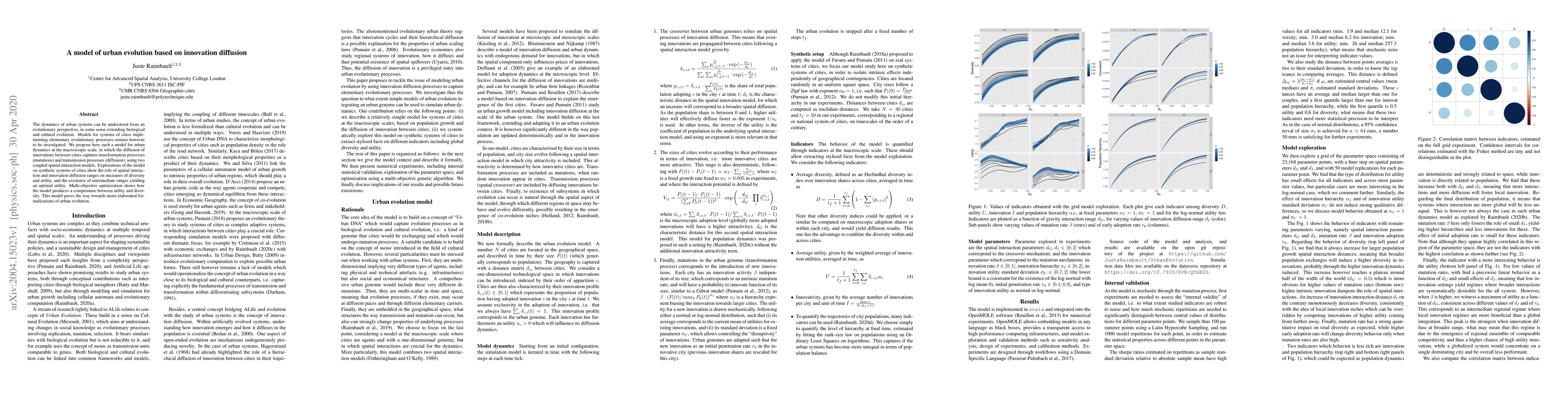 The paper proposes a model of urban evolution based on innovation diffusion, showing how spatial interactions and diffusion ranges impact diversity and utility in city systems, and demonstrates a balance between utility and diversity through multi-objective optimization. The model offers a foundation for future formalizations of urban dynamics.