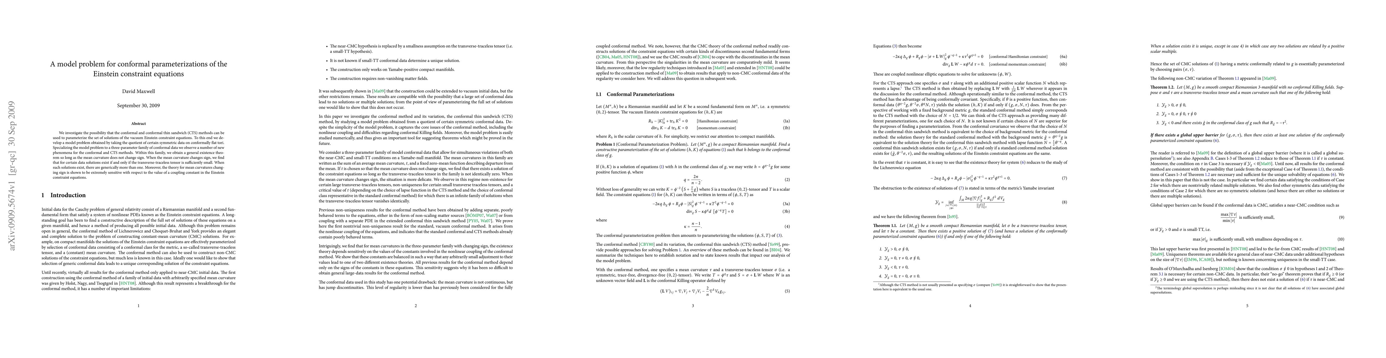 We investigate the possibility that the conformal and conformal thin sandwich (CTS) methods can be used to parameterize the set of solutions of the vacuum Einstein constraint equations. To this end we develop a model problem obtained by taking the quotient of certain symmetric data on conformally flat tori. Specializing the model problem to a three-parameter family of conformal data we observe a number of new phenomena for the conformal and CTS methods. Within this family, we obtain a general existence theorem so long as the mean curvature does not change sign. When the mean curvature changes sign, we find that for certain data solutions exist if and only if the transverse-traceless tensor is sufficiently small. When such solutions exist, there are generically more than one. Moreover, the theory for mean curvatures changing sign is shown to be extremely sensitive with respect to the value of a coupling constant in the Einstein constraint equations.