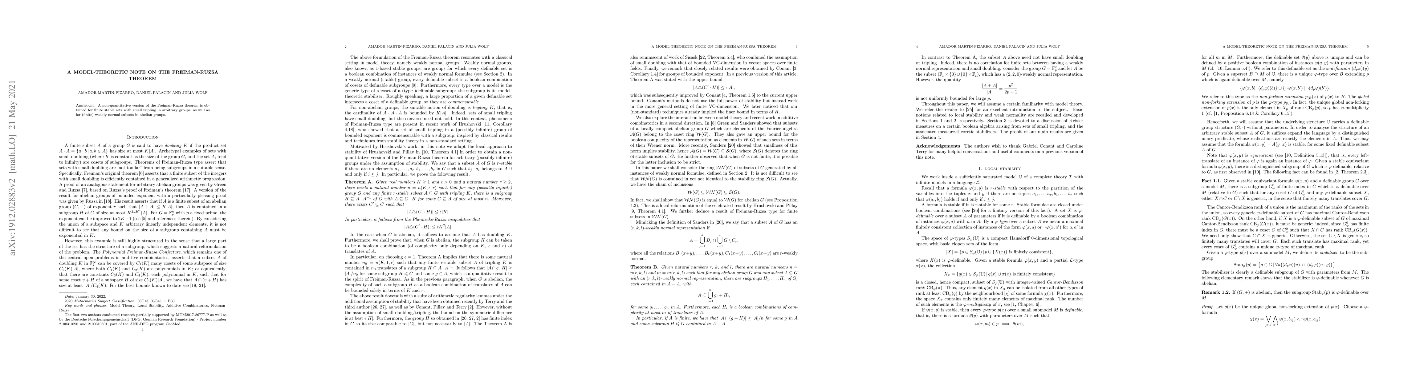 Summary: This paper presents a non-quantitative version of the Freiman-Ruzsa theorem for finite stable sets with minimal tripling in arbitrary groups and for weakly normal subsets in abelian groups. The focus is on structural properties rather than quantitative measures.