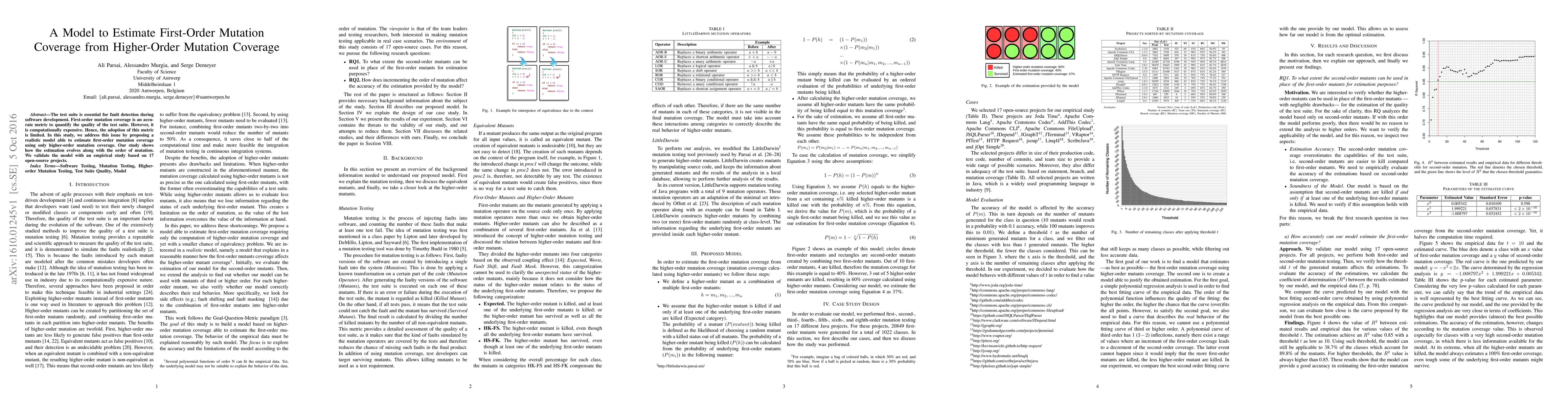 The test suite is essential for fault detection during software development. First-order mutation coverage is an accurate metric to quantify the quality of the test suite. However, it is computationally expensive. Hence, the adoption of this metric is limited. In this study, we address this issue by proposing a realistic model able to estimate first-order mutation coverage using only higher-order mutation coverage. Our study shows how the estimation evolves along with the order of mutation. We validate the model with an empirical study based on 17 open-source projects.