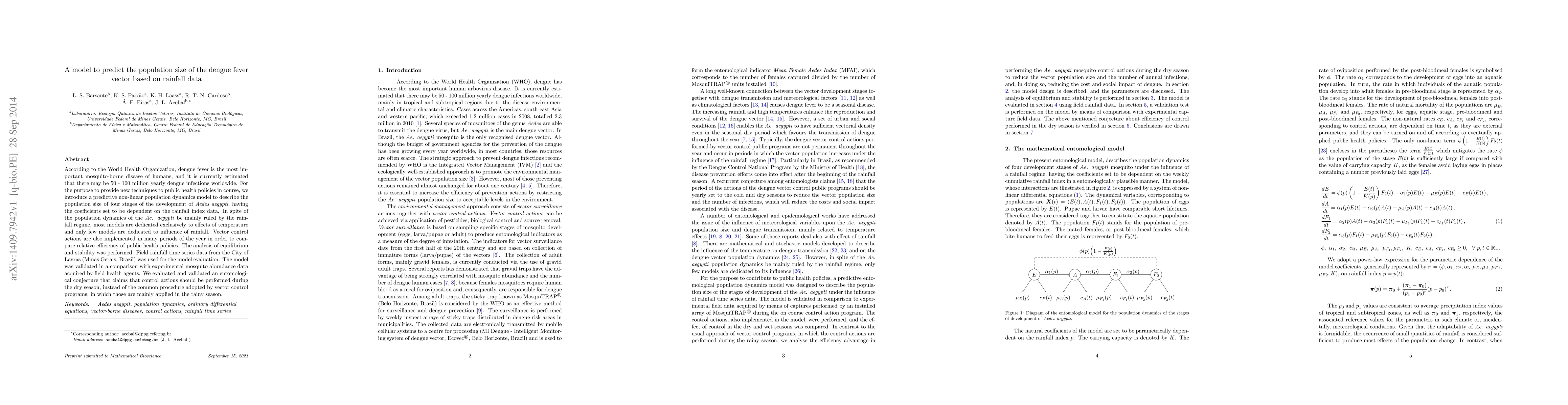 This paper introduces a predictive non-linear model for estimating the population size of the dengue fever vector \emph{Aedes aegypti} based on rainfall data, contrasting with existing models that primarily focus on temperature. The model was validated using field data from Lavras, Brazil, and suggests that vector control should be more effective during the dry season.