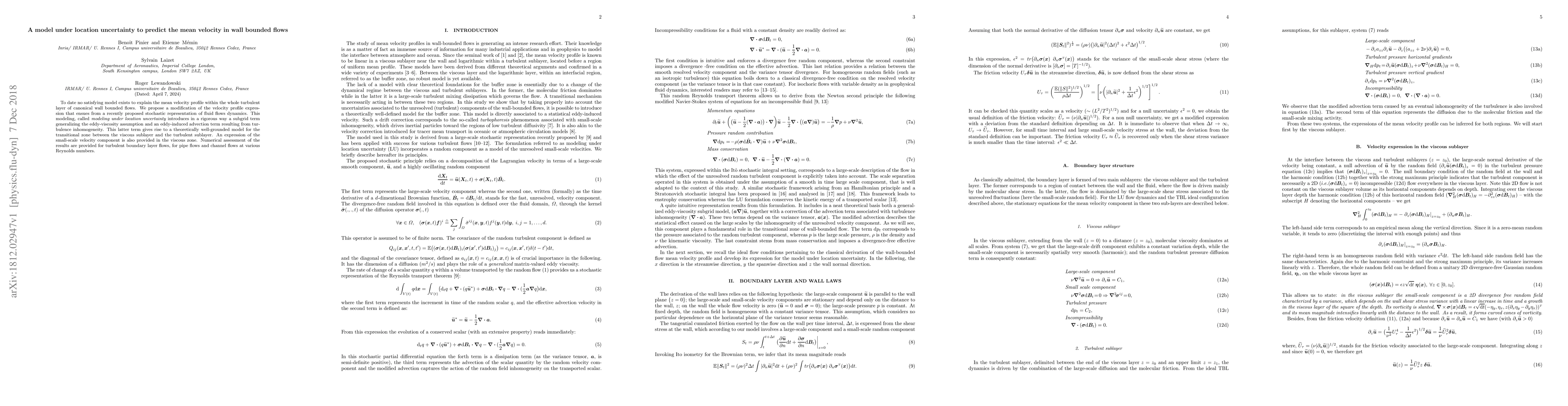 This paper proposes a new model for predicting mean velocity profiles in wall-bounded turbulent flows by incorporating location uncertainty, introducing a subgrid term and an eddy-induced advection term. Numerical assessments show the model's effectiveness across various turbulent boundary, pipe, and channel flows at different Reynolds numbers.