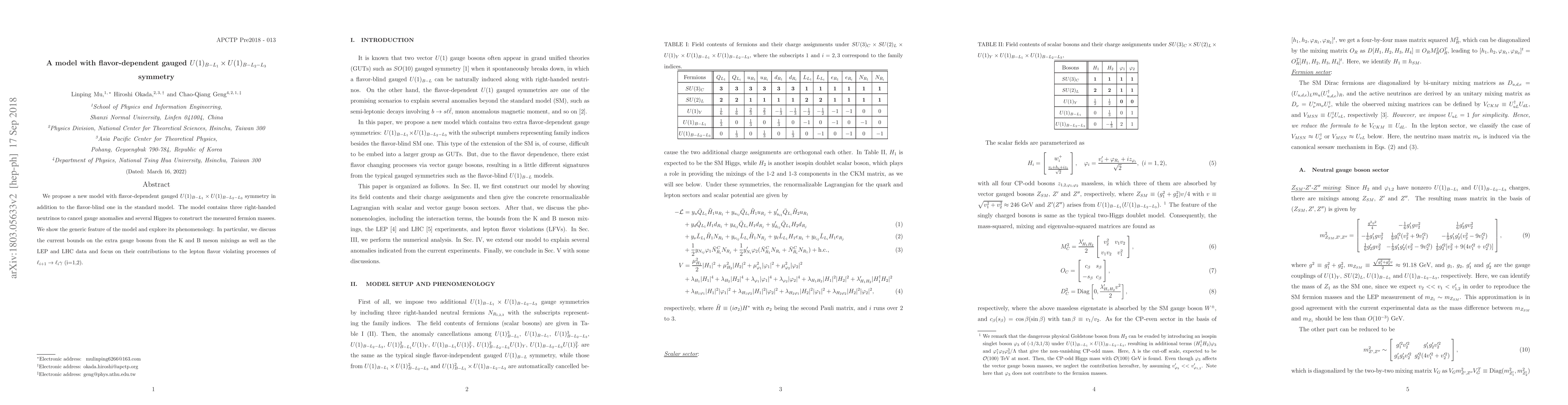 This paper proposes a new model with flavor-dependent gauged $U(1)_{B-L_1}\times U(1)_{B-L_2-L_3}$ symmetry, incorporating three right-handed neutrinos and multiple Higgses to address gauge anomalies and fermion masses. It explores the model's phenomenology, focusing on constraints from K and B meson mixings, LEP, and LHC data, and its implications for lepton flavor violating processes.