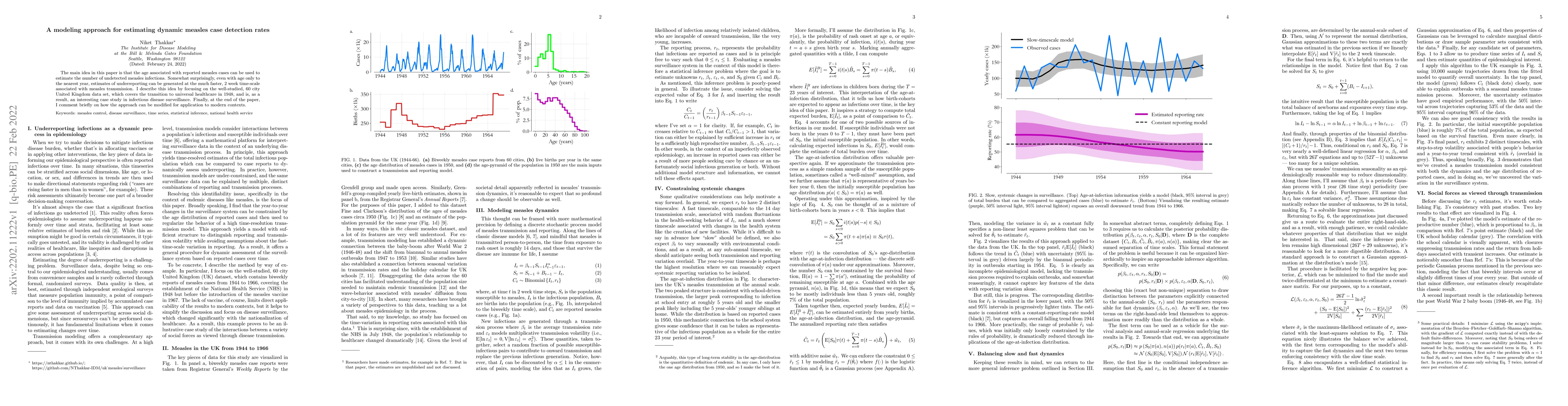 The main idea in this paper is that the age associated with reported measles cases can be used to estimate the number of undetected measles infections. Somewhat surprisingly, even with age only to the nearest year, estimates of underreporting can be generated at the much faster, 2 week time-scale associated with measles transmission. I describe this idea by focusing on the well-studied, 60 city United Kingdom data set, which covers the transition to universal healthcare in 1948, and is, as a result, an interesting case study in infectious disease surveillance. Finally, at the end of the paper, I comment briefly on how the approach can be modified for application to modern contexts.