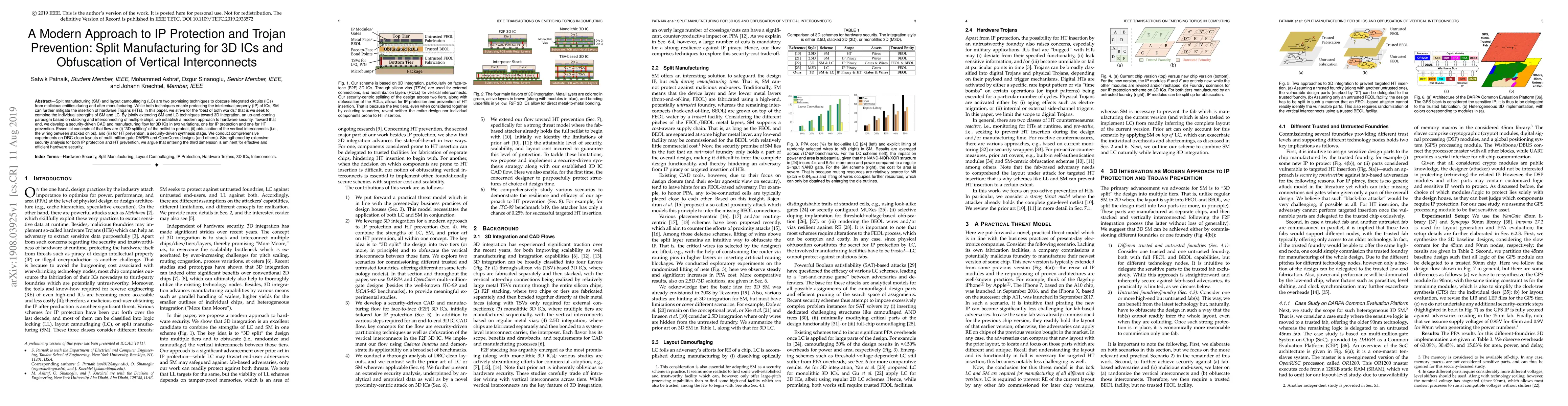 Split manufacturing (SM) and layout camouflaging (LC) are two promising techniques to obscure integrated circuits (ICs) from malicious entities during and after manufacturing. While both techniques enable protecting the intellectual property (IP) of ICs, SM can further mitigate the insertion of hardware Trojans (HTs). In this paper, we strive for the "best of both worlds," that is we seek to combine the individual strengths of SM and LC. By jointly extending SM and LC techniques toward 3D integration, an up-and-coming paradigm based on stacking and interconnecting of multiple chips, we establish a modern approach to hardware security. Toward that end, we develop a security-driven CAD and manufacturing flow for 3D ICs in two variations, one for IP protection and one for HT prevention. Essential concepts of that flow are (i) "3D splitting" of the netlist to protect, (ii) obfuscation of the vertical interconnects (i.e., the wiring between stacked chips), and (iii) for HT prevention, a security-driven synthesis stage. We conduct comprehensive experiments on DRC-clean layouts of multi-million-gate DARPA and OpenCores designs (and others). Strengthened by extensive security analysis for both IP protection and HT prevention, we argue that entering the third dimension is eminent for effective and efficient hardware security.