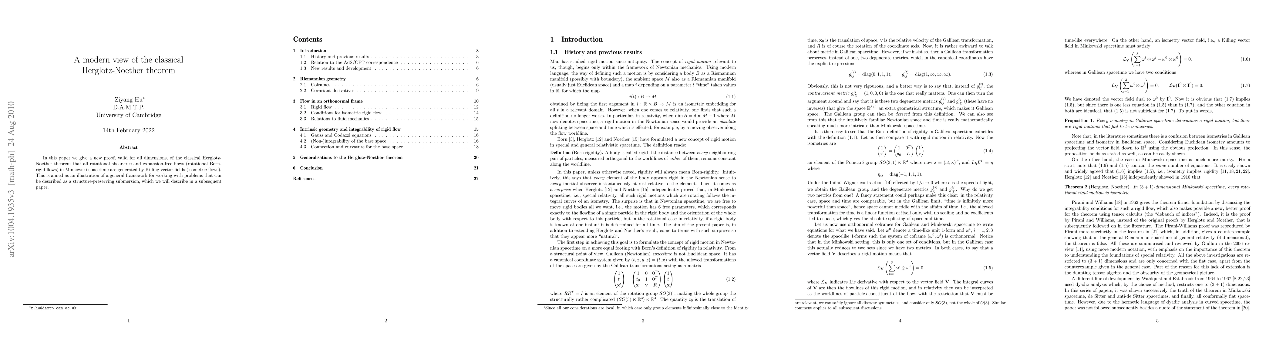 In this paper we give a new proof, valid for all dimensions, of the classical Herglotz-Noether theorem that all rotational shear-free and expansion-free flows (rotational Born-rigid flows) in Minkowski spacetime are generated by Killing vector fields (isometric flows). This is aimed as an illustration of a general framework for working with problems that can be described as a structure-preserving submersion, which we will describe in a subsequent paper.