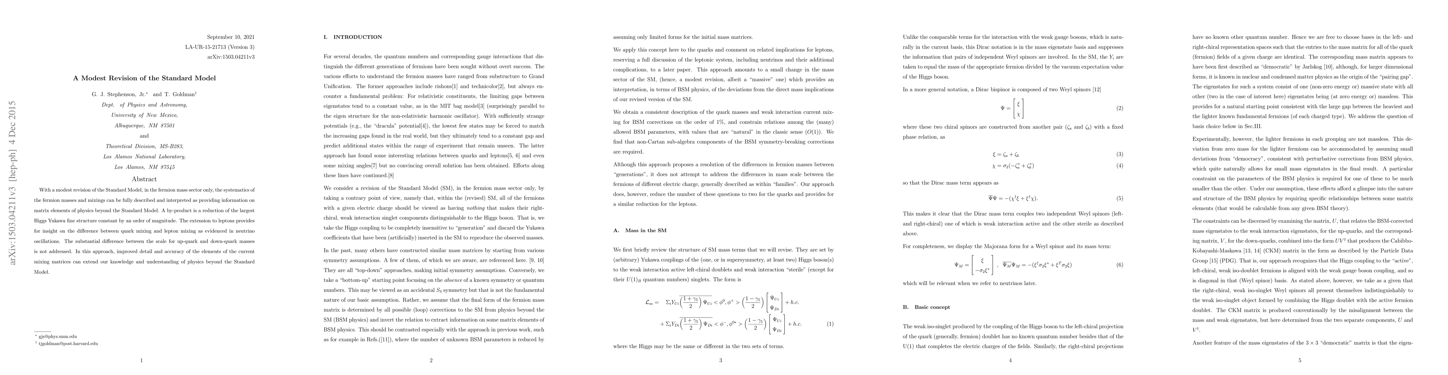 This paper proposes a revision to the Standard Model that improves its accuracy in describing fermion masses and mixings, providing new insights into physics beyond the model.