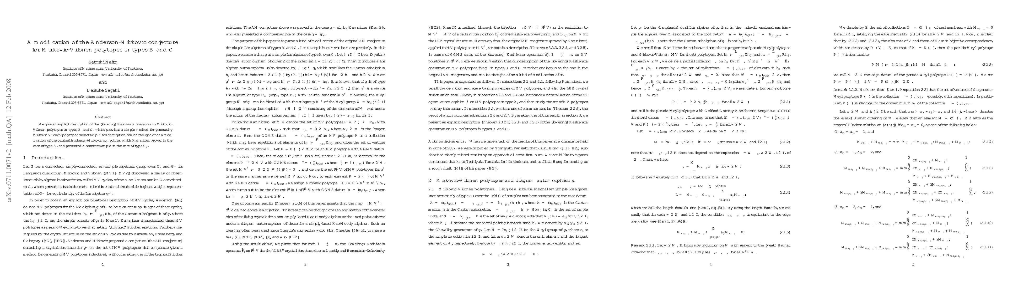 We give an explicit description of the (lowering) Kashiwara operators on Mirkovi\'c-Vilonen polytopes in types $B$ and $C$, which provides a simple method for generating Mirkovi\'c-Vilonen polytopes inductively. This description can be thought of as a modification of the original Anderson-Mirkovi\'c conjecture, which Kamnitzer proved in the case of type $A$, and presented a counterexample in the case of type $C_{3}$.