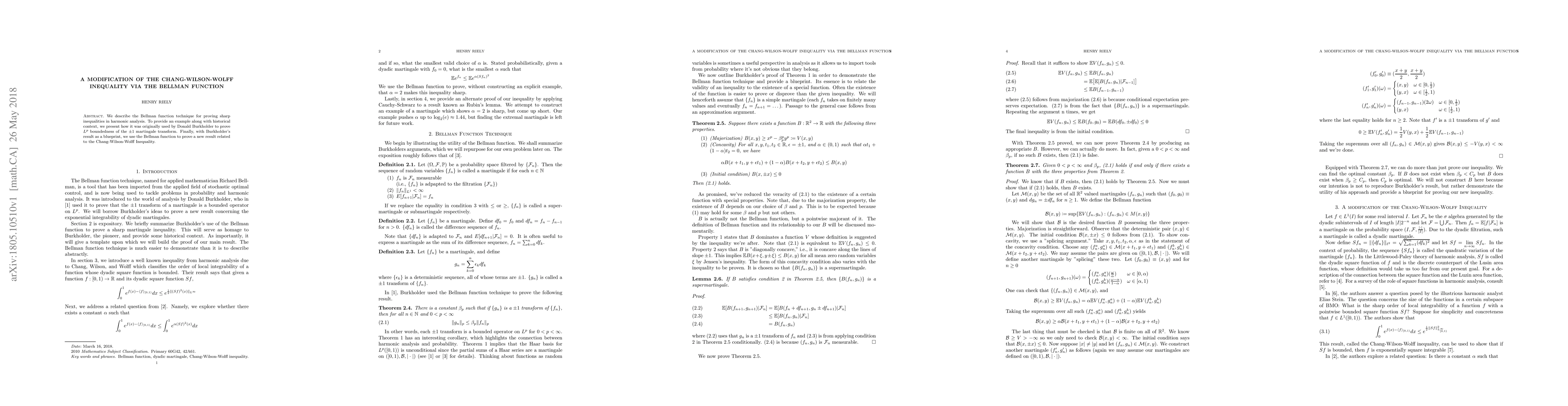 We describe the Bellman function technique for proving sharp inequalities in harmonic analysis. To provide an example along with historical context, we present how it was originally used by Donald Burkholder to prove $L^p$ boundedness of the $\pm 1$ martingale transform. Finally, with Burkholder's result as a blueprint, we use the Bellman function to prove a new result related to the Chang-Wilson-Wolff Inequality.