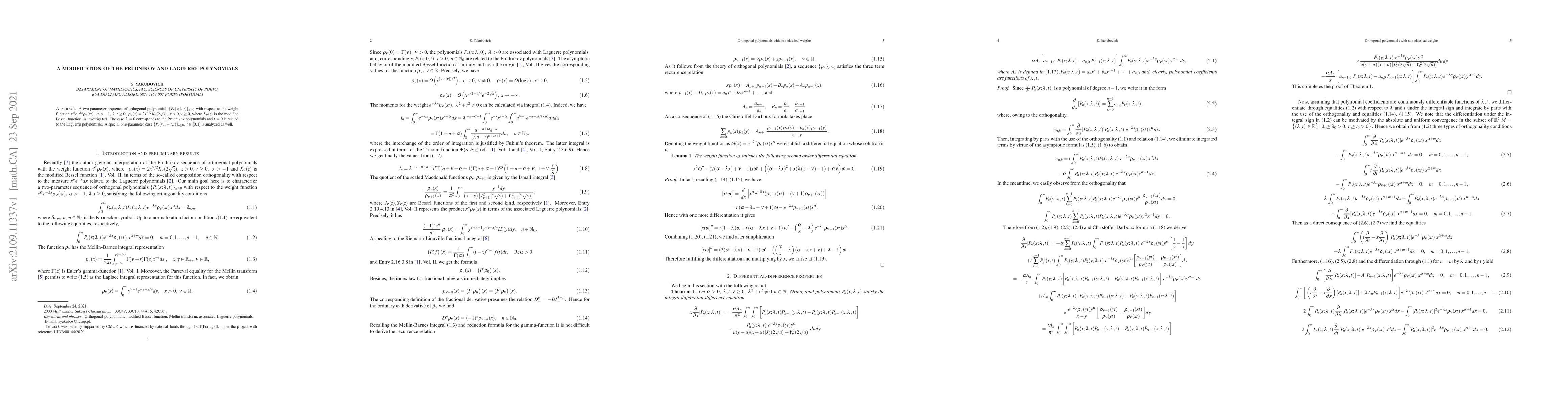This paper introduces a two-parameter sequence of orthogonal polynomials $\{P_n( x; \lambda, t)\}$ with a weight function involving modified Bessel functions. It extends Prudnikov and Laguerre polynomials and specifically examines the case $\{P_n( x; 1-t, t)\}$ for $t \in [0,1]$.