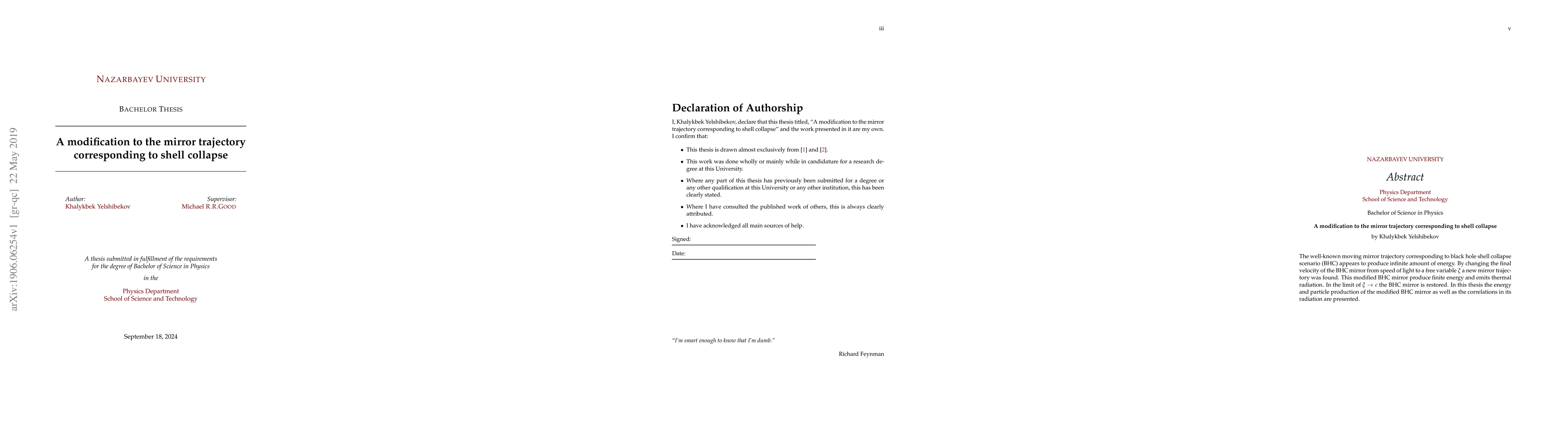 The well-known moving mirror trajectory corresponding to black hole shell collapse scenario (BHC) appears to produce an infinite amount of energy. By changing the final velocity of the BHC mirror from the speed of light to a free variable $\xi$ a new mirror trajectory was found. This modified BHC mirror produces finite energy and emits thermal radiation. In the limit of $\xi \to c$ the BHC mirror is restored. In this thesis, the energy and particle production of the modified BHC mirror, as well as the correlations in its radiation, are presented.
