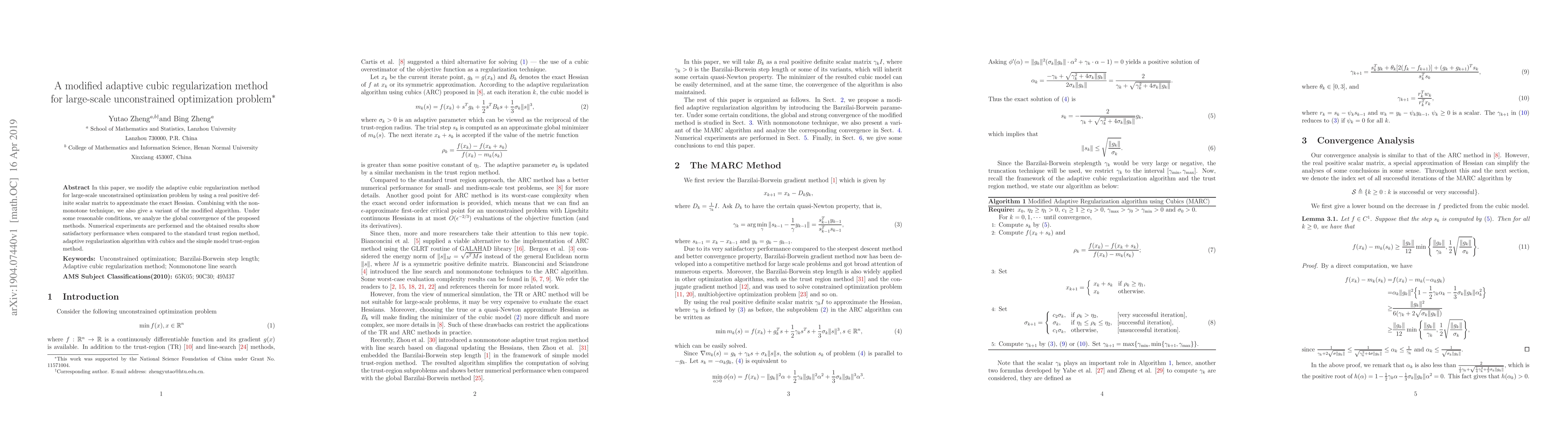 In this paper, we modify the adaptive cubic regularization method for large-scale unconstrained optimization problem by using a real positive definite scalar matrix to approximate the exact Hessian. Combining with the nonmonotone technique, we also give a variant of the modified algorithm. Under some reasonable conditions, we analyze the global convergence of the proposed methods. Numerical experiments are performed and the obtained results show satisfactory performance when compared to the standard trust region method, adaptive regularization algorithm with cubics and the simple model trust-region method.