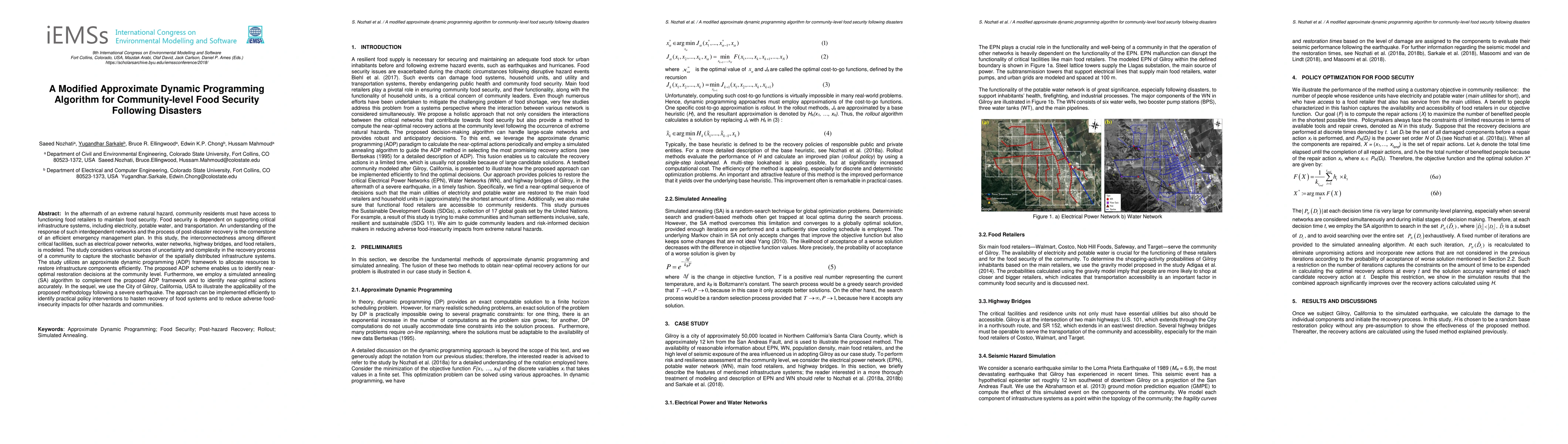This paper proposes a modified approximate dynamic programming (ADP) algorithm enhanced by simulated annealing (SA) to optimize the restoration of interdependent infrastructure for community-level food security post-disaster. The methodology is demonstrated using Gilroy, California, to expedite recovery and mitigate food insecurity following severe earthquakes.