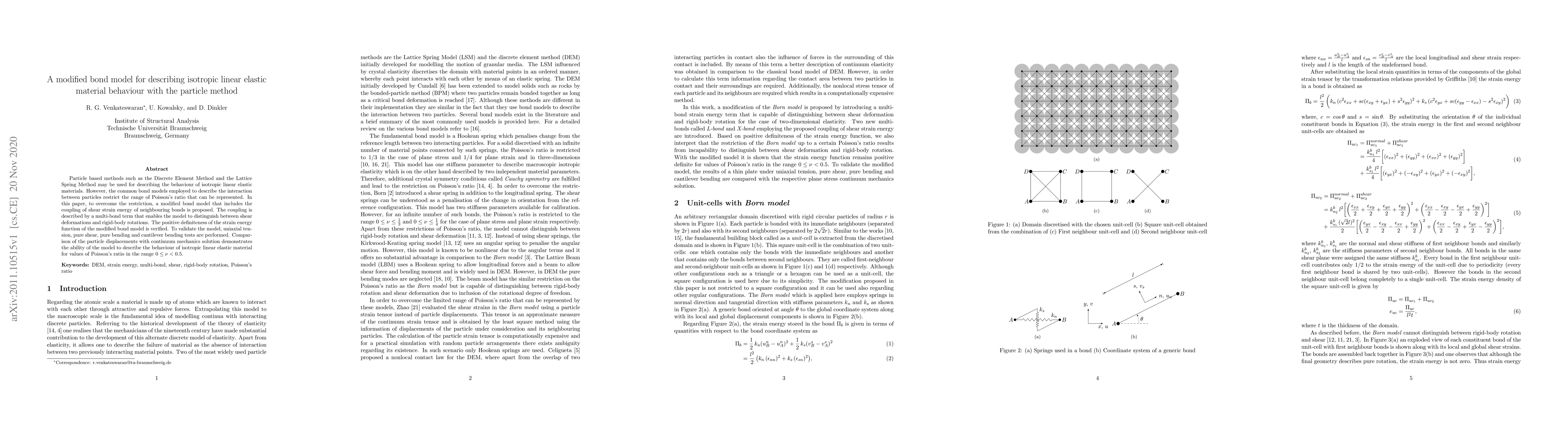 A new bond model is proposed to describe isotropic linear elastic material behavior, allowing for Poisson's ratio values beyond the conventional range, and validated through various tests.