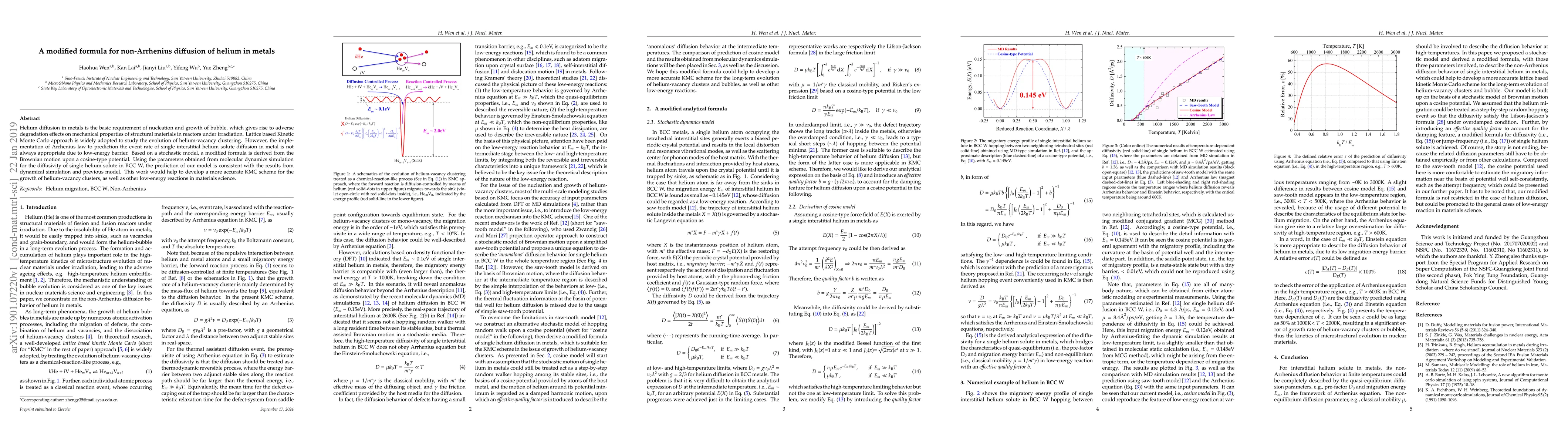The paper introduces a modified analytical formula for helium diffusivity in metals, incorporating a cosine-type potential and an effective quality factor to describe the anomalous diffusion behavior at intermediate temperatures.