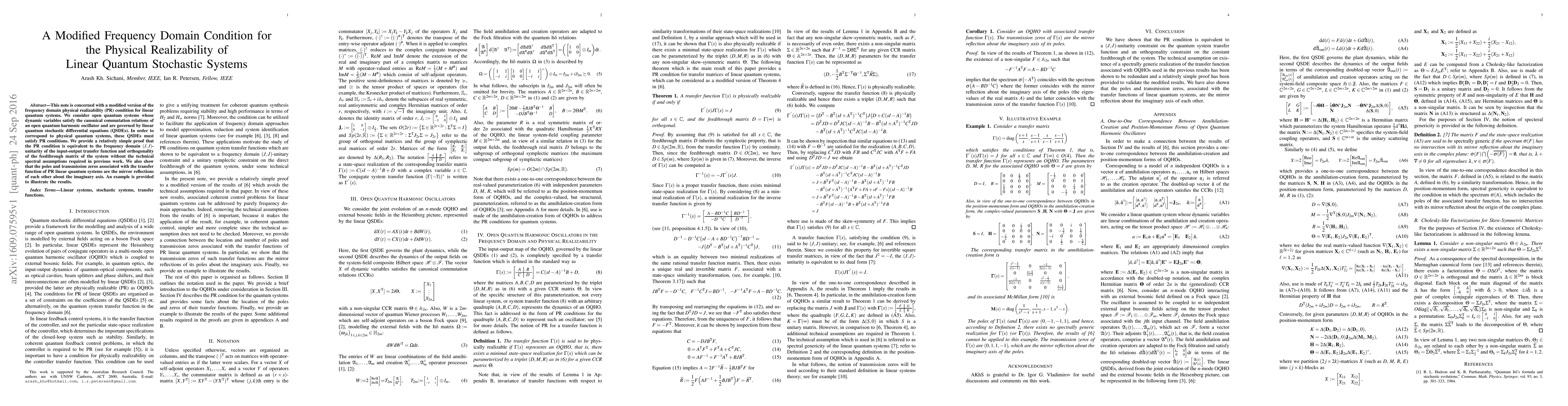 This paper proposes a modified frequency domain condition for the physical realizability of linear quantum stochastic systems, demonstrating equivalence to $(J,J)$-unitarity and feedthrough matrix orthogonality without prior spectral assumptions. It also reveals that the poles and zeros of the system's transfer function are mirror reflections about the imaginary axis.