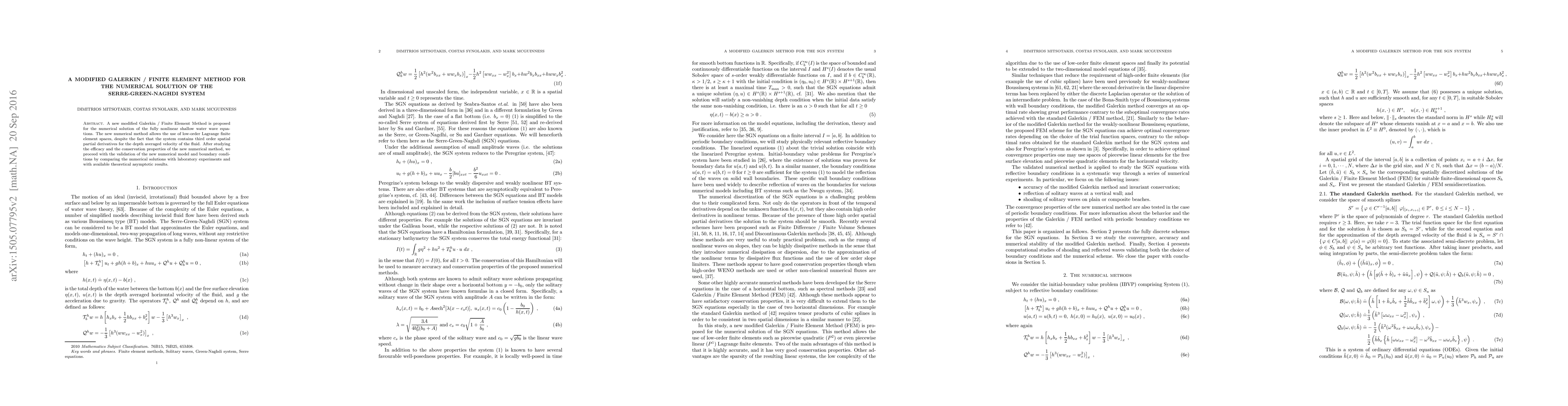 This paper proposes a modified Galerkin/Finite Element Method for solving the Serre-Green-Naghdi system, enabling the use of low-order elements despite third-order derivatives. The method's efficacy and conservation properties are validated against laboratory experiments and theoretical results.