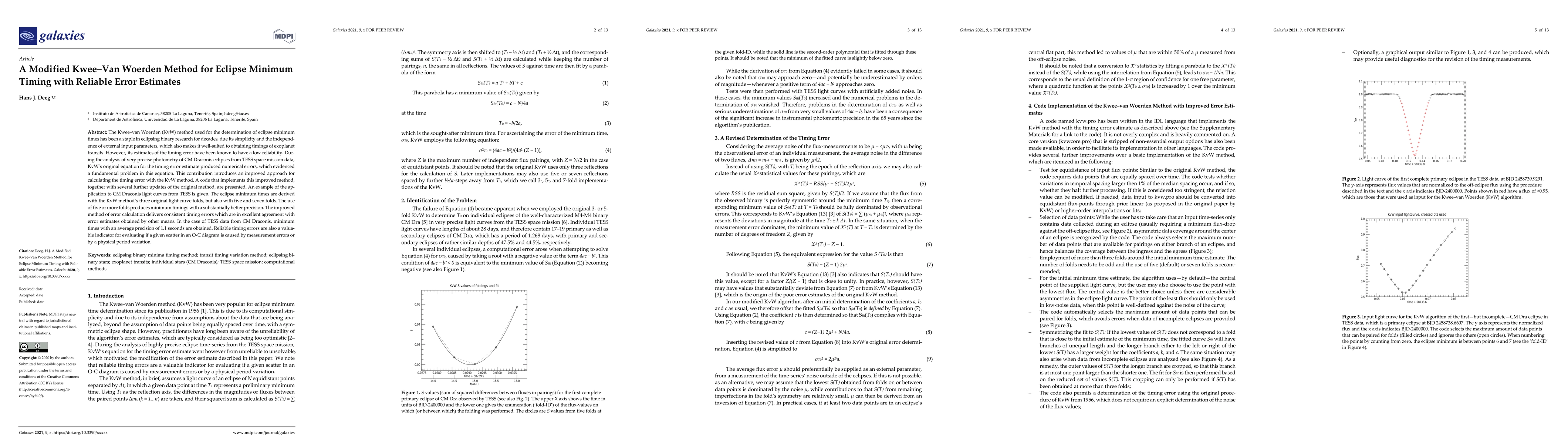 A modified Kwee-van Woerden method improves eclipse minimum timing accuracy with reliable error estimates, allowing for more precise evaluation of period variations in eclipsing binaries.