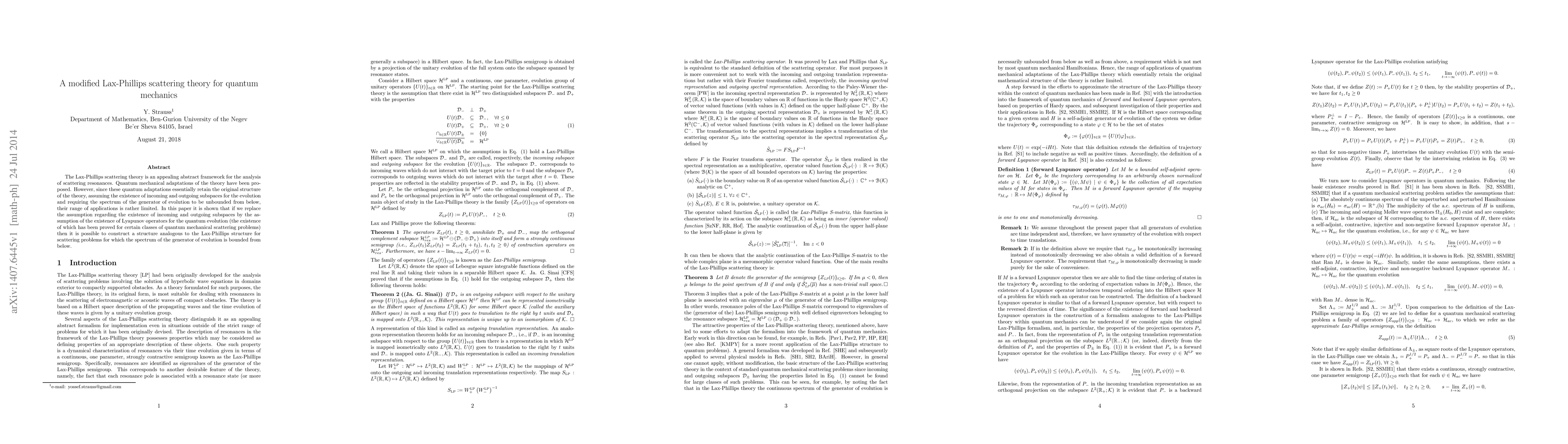 This paper modifies the Lax-Phillips scattering theory for quantum mechanics by replacing the assumption of incoming and outgoing subspaces with Lyapunov operators, allowing for a broader application range even when the generator's spectrum is bounded from below.