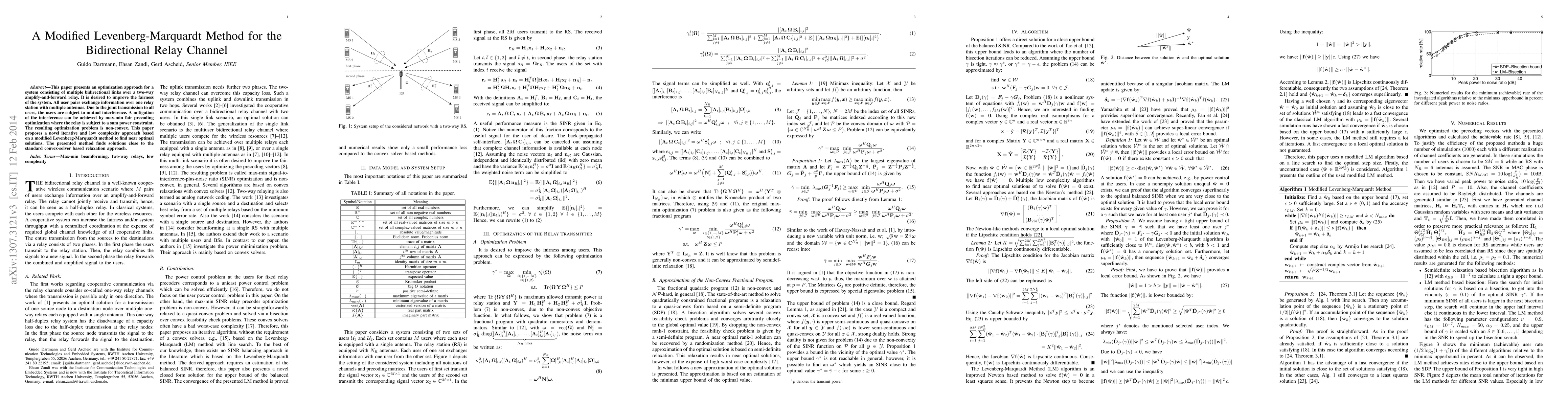 This paper proposes a modified Levenberg-Marquardt method for optimizing bidirectional relay channels to enhance fairness among multiple user pairs. The approach aims to mitigate mutual interference through max-min fair precoding optimization under a sum power constraint, achieving near-optimal solutions with lower complexity.