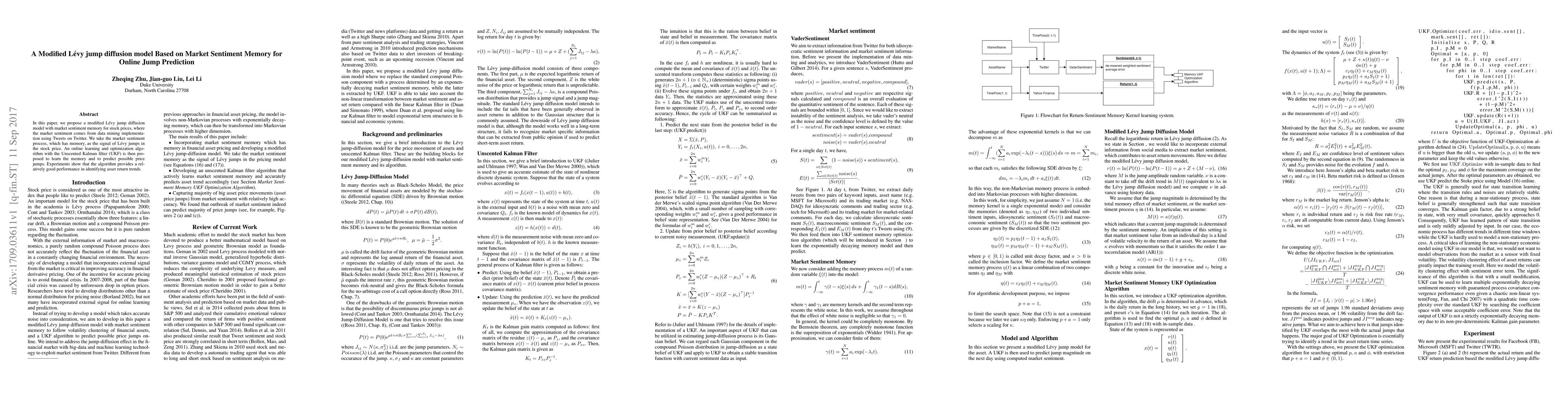 This paper introduces a modified Levy jump-diffusion model incorporating market sentiment memory derived from Twitter data to predict stock price jumps. An online learning and optimization algorithm with the Unscented Kalman filter is used to learn sentiment memory and predict jumps, demonstrating effective performance in trend identification.