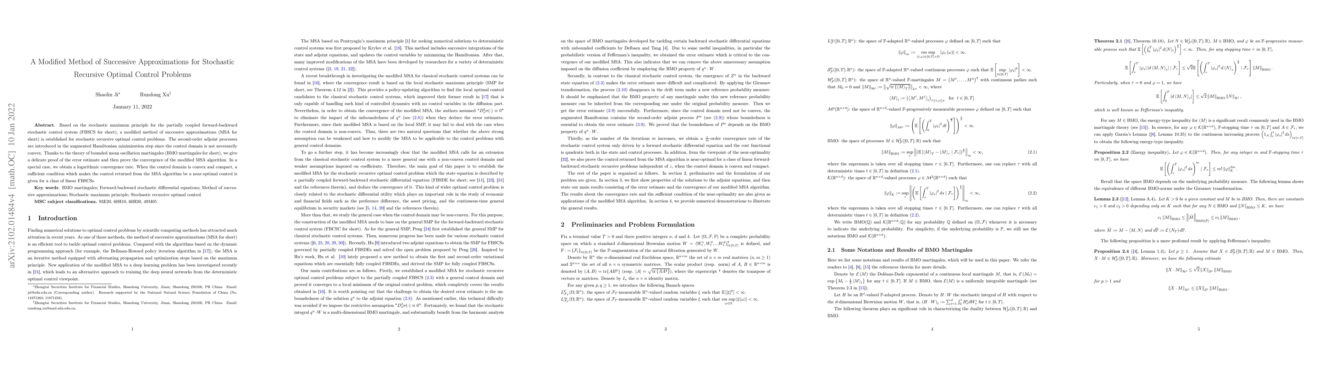 Based on the stochastic maximum principle for the partially coupled forward-backward stochastic control system (FBSCS for short), a modified method of successive approximations (MSA for short) is established for stochastic recursive optimal control problems. The second-order adjoint processes are introduced in the augmented Hamiltonian minimization step since the control domain is not necessarily convex. Thanks to the theory of bounded mean oscillation martingales (BMO martingales for short), we give a delicate proof of the error estimate and then prove the convergence of the modified MSA algorithm. In a special case, we obtain a logarithmic convergence rate. When the control domain is convex and compact, a sufficient condition which makes the control returned from the MSA algorithm be a near-optimal control is given for a class of linear FBSCSs.
