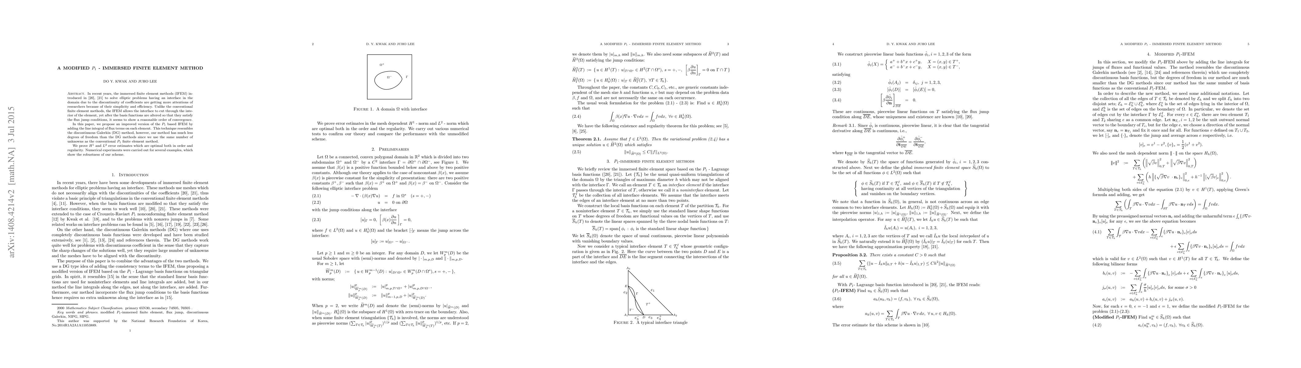 In recent years, the immersed finite element methods (IFEM) introduced in \cite{Li2003}, \cite{Li2004} to solve elliptic problems having an interface in the domain due to the discontinuity of coefficients are getting more attentions of researchers because of their simplicity and efficiency. Unlike the conventional finite element methods, the IFEM allows the interface cut through the interior of the element, yet after the basis functions are altered so that they satisfy the flux jump conditions, it seems to show a reasonable order of convergence. In this paper, we propose an improved version of the $P_1$ based IFEM by adding the line integral of flux terms on each element. This technique resembles the discontinuous Galerkin (DG) method, however, our method has much less degrees of freedom than the DG methods since we use the same number of unknowns as the conventional $P_1$ finite element method. We prove $H^1$ and $L^2$ error estimates which are optimal both in order and regularity. Numerical experiments were carried out for several examples, which show the robustness of our scheme.