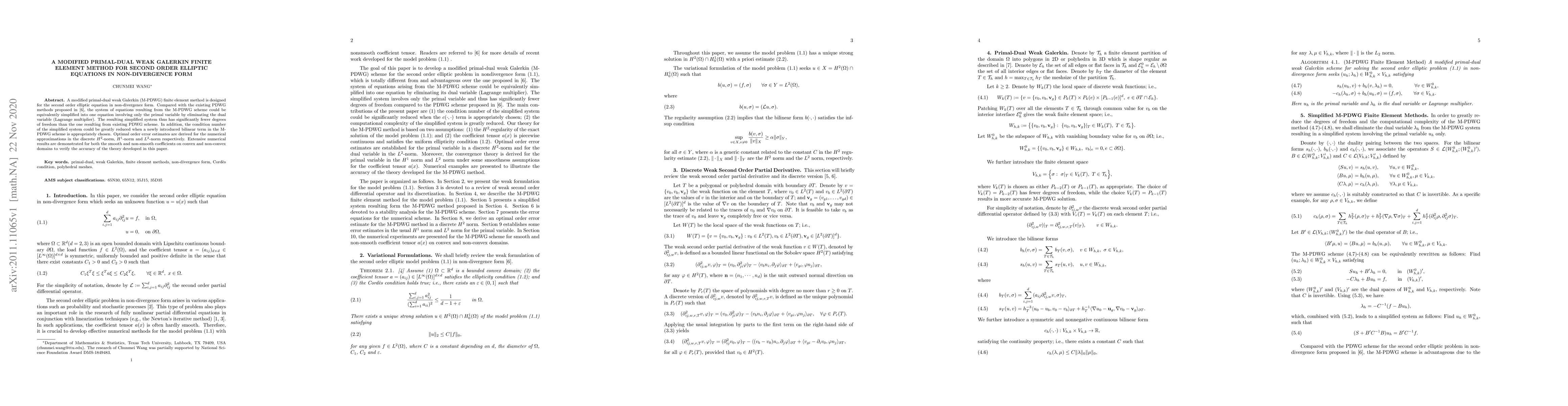 This paper introduces a modified primal-dual weak Galerkin (M-PDWG) finite element method for solving second-order elliptic equations in non-divergence form, simplifying the system to fewer degrees of freedom and reducing the condition number. Optimal error estimates and numerical results confirm the method's accuracy.
