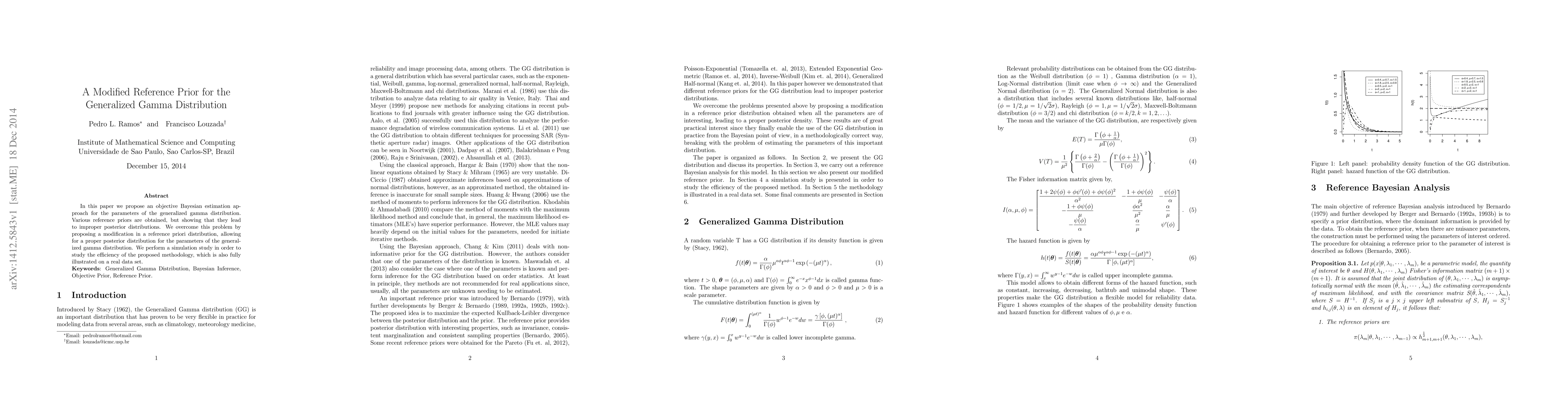 Researchers developed a modified reference prior for the generalized gamma distribution to achieve proper posterior distributions, demonstrating improved efficiency in Bayesian estimation through simulation studies on both real and simulated data.