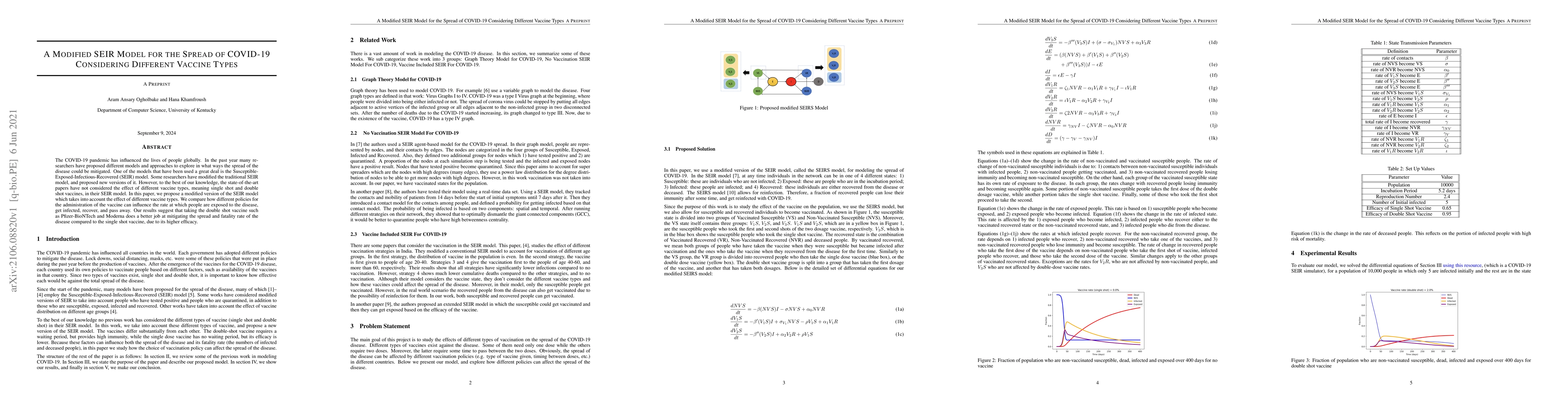 This paper proposes a modified SEIR model to evaluate the impact of different vaccine types on COVID-19 spread. It finds that double shot vaccines are more effective in mitigating disease spread and fatality compared to single shot vaccines due to higher efficacy.