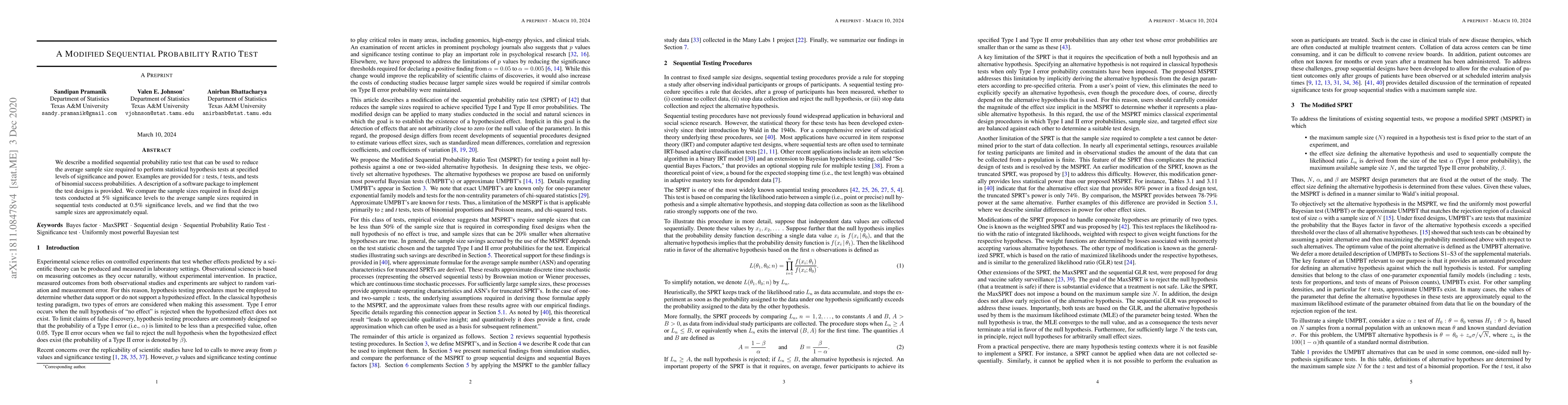 This paper introduces a modified sequential probability ratio test to decrease the average sample size needed for hypothesis tests while maintaining significance and power levels. It demonstrates its application through $z$ and $t$ tests, and a software package for implementation, showing comparable sample sizes to fixed designs at lower significance levels.