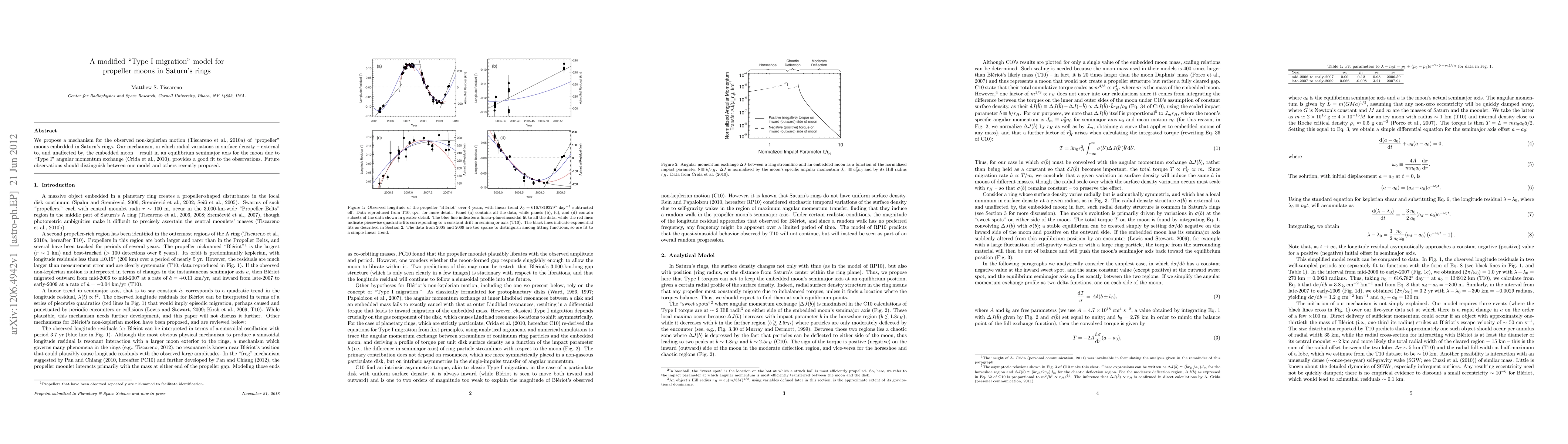 This paper proposes a new model for propeller moons in Saturn's rings, explaining their non-keplerian motion through angular momentum exchange with surrounding ring surface density variations.
