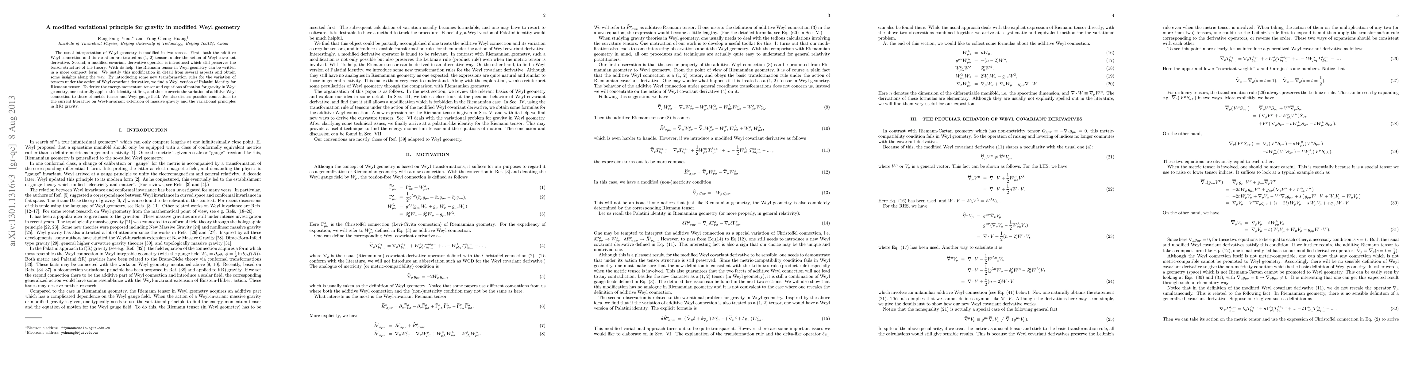 This paper modifies Weyl geometry by treating the Weyl connection as a (1, 2) tensor and introduces a new covariant derivative operator, leading to a more compact Riemann tensor expression. It derives a Weyl version of the Palatini identity and discusses its implications for gravity equations and connections to massive gravity and f(R) gravity.