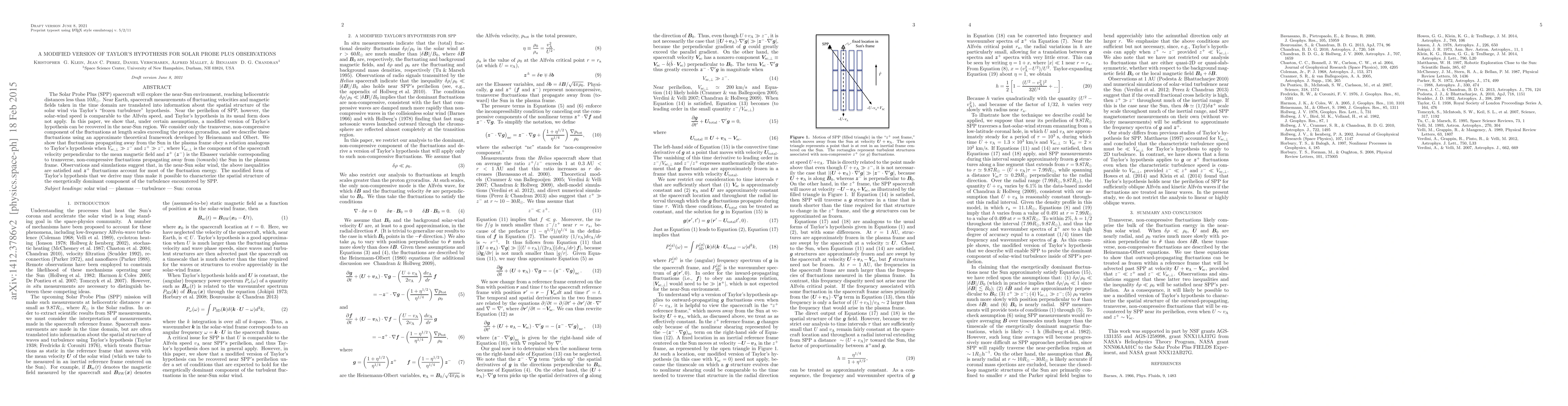 A modified version of Taylor's hypothesis for Solar Probe Plus is proposed to describe the spatial structure of turbulence in the near-Sun solar wind, overcoming limitations at heliocentric distances less than $10 R_{ m ext{Sun}}$.