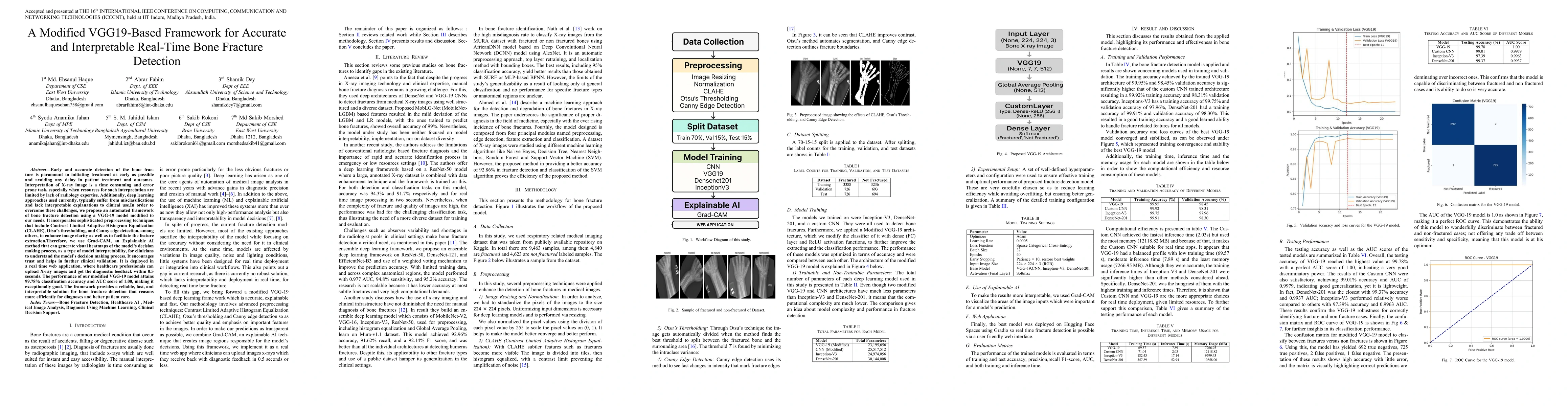 Early and accurate detection of the bone fracture is paramount to initiating treatment as early as possible and avoiding any delay in patient treatment and outcomes. Interpretation of X-ray image is a time consuming and error prone task, especially when resources for such interpretation are limited by lack of radiology expertise. Additionally, deep learning approaches used currently, typically suffer from misclassifications and lack interpretable explanations to clinical use. In order to overcome these challenges, we propose an automated framework of bone fracture detection using a VGG-19 model modified to our needs. It incorporates sophisticated preprocessing techniques that include Contrast Limited Adaptive Histogram Equalization (CLAHE), Otsu's thresholding, and Canny edge detection, among others, to enhance image clarity as well as to facilitate the feature extraction. Therefore, we use Grad-CAM, an Explainable AI method that can generate visual heatmaps of the model's decision making process, as a type of model interpretability, for clinicians to understand the model's decision making process. It encourages trust and helps in further clinical validation. It is deployed in a real time web application, where healthcare professionals can upload X-ray images and get the diagnostic feedback within 0.5 seconds. The performance of our modified VGG-19 model attains 99.78\% classification accuracy and AUC score of 1.00, making it exceptionally good. The framework provides a reliable, fast, and interpretable solution for bone fracture detection that reasons more efficiently for diagnoses and better patient care.