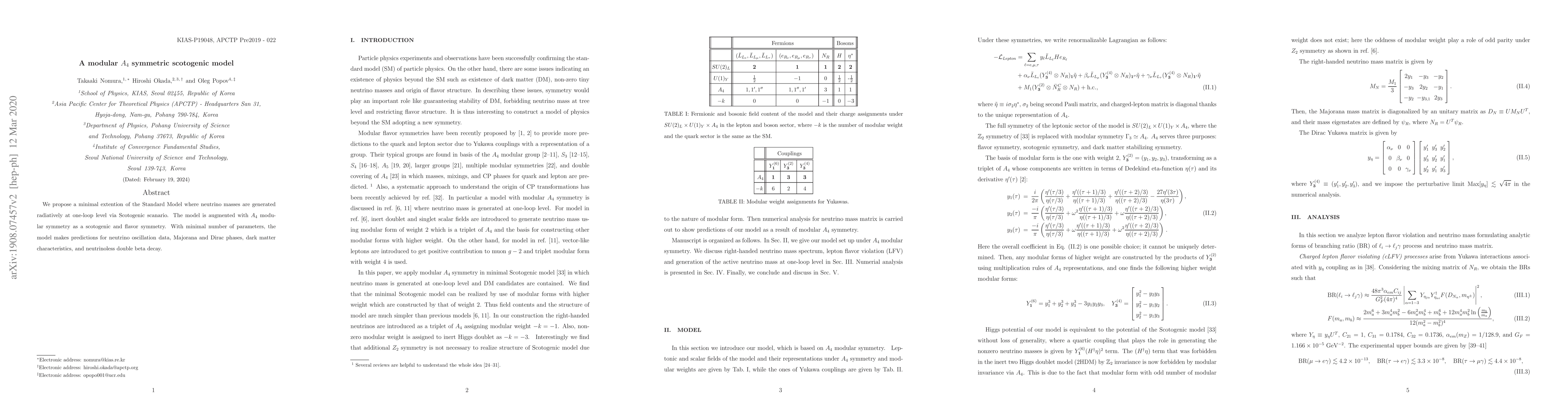 The paper introduces a modular $A_4$ symmetric scotogenic model with a simpler field content, using higher-weight modular forms to generate neutrino masses radiatively at one-loop level.