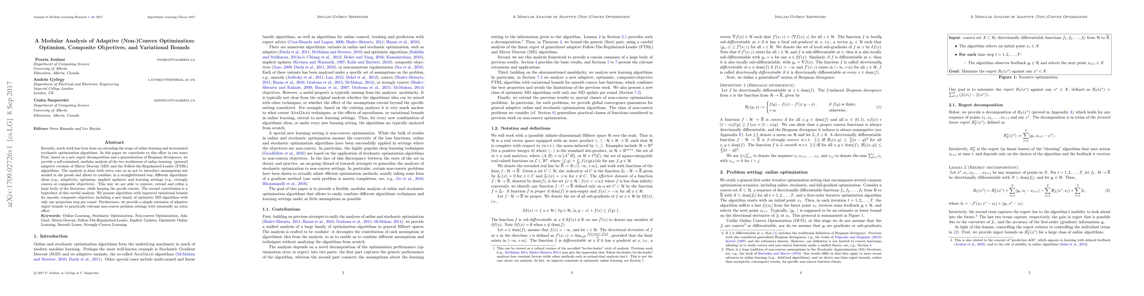 Recently, much work has been done on extending the scope of online learning and incremental stochastic optimization algorithms. In this paper we contribute to this effort in two ways: First, based on a new regret decomposition and a generalization of Bregman divergences, we provide a self-contained, modular analysis of the two workhorses of online learning: (general) adaptive versions of Mirror Descent (MD) and the Follow-the-Regularized-Leader (FTRL) algorithms. The analysis is done with extra care so as not to introduce assumptions not needed in the proofs and allows to combine, in a straightforward way, different algorithmic ideas (e.g., adaptivity, optimism, implicit updates) and learning settings (e.g., strongly convex or composite objectives). This way we are able to reprove, extend and refine a large body of the literature, while keeping the proofs concise. The second contribution is a byproduct of this careful analysis: We present algorithms with improved variational bounds for smooth, composite objectives, including a new family of optimistic MD algorithms with only one projection step per round. Furthermore, we provide a simple extension of adaptive regret bounds to practically relevant non-convex problem settings with essentially no extra effort.